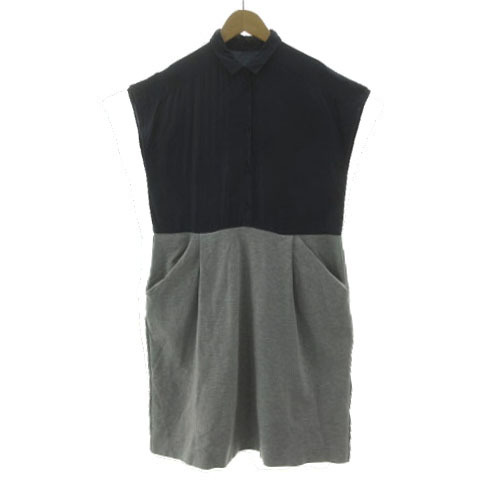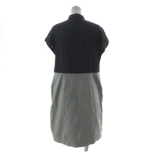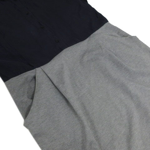 アーバンリサーチ ドアーズ URBAN RESEARCH DOORS ドッキングシャツワンピース 半袖 ひざ丈 タック 切替え 配色 紺 グレー One