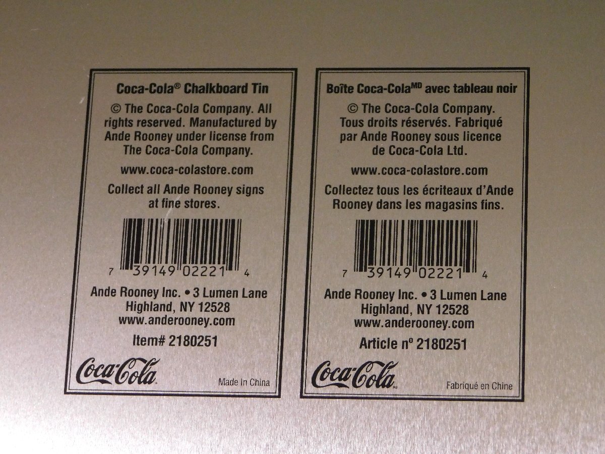 コカ コーラ (Coca-Cola) の、ブリキ素材「チョークボード」です。