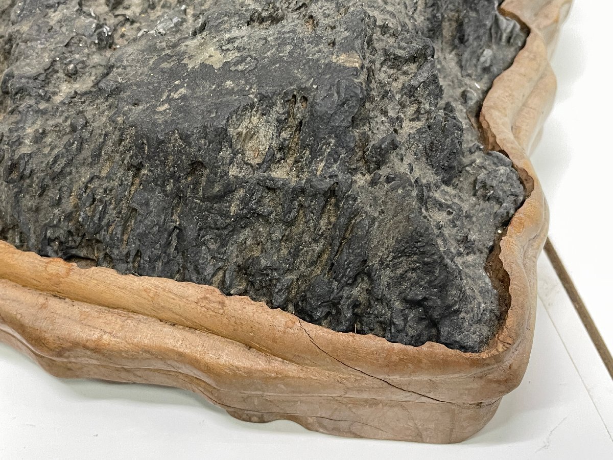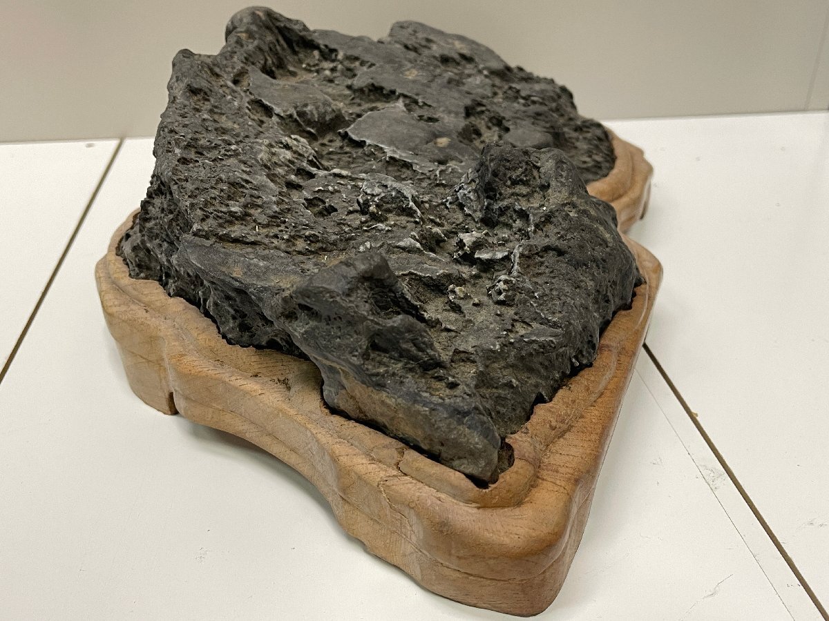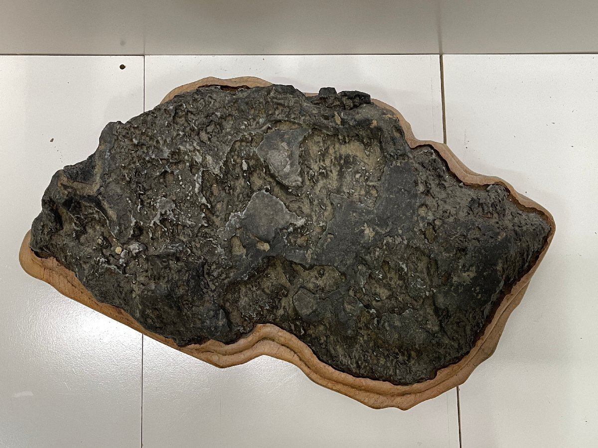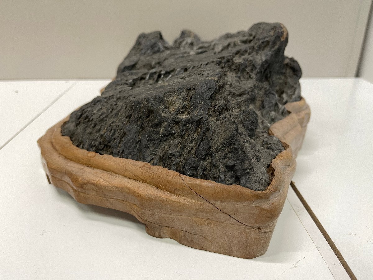 ●台座付き水石 盆栽 盆石 45×27×12cm ストーン オブジェ 自然 天然石 鑑賞石 岩 庭園 枯山水 木製台 装飾品 飾り石 コレクション (1)