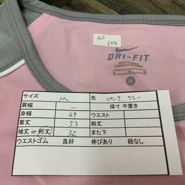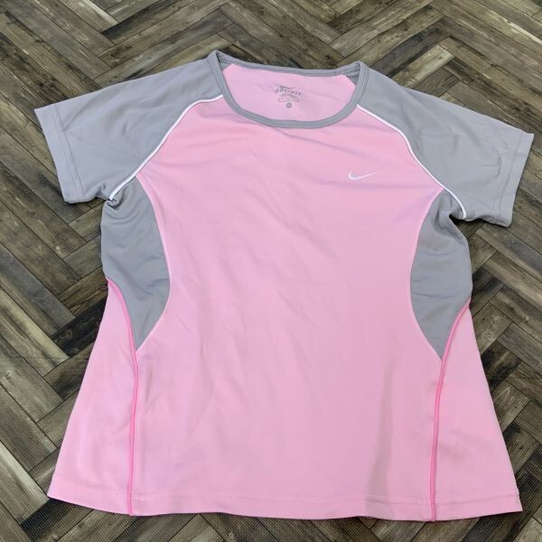 QS654 NIKE ナイキ 半袖Tシャツ スポーツウェア ワンポイント ピンク グレー レディースM