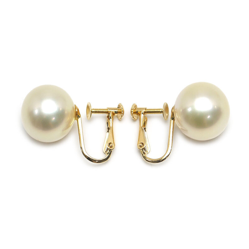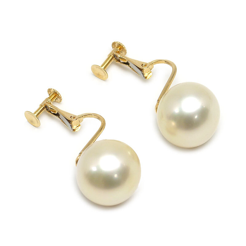 ・ネジバネ式イヤリング。色はかなり薄いゴールド系で、形状は少し潰れた球体です 。使用の際に気になるダメージのない綺麗なお品物となります。