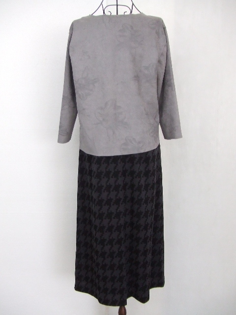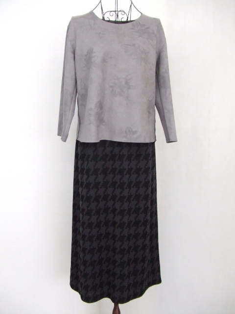 レトロ柄上下セット ①七分袖カットソー/花柄・グレー ②RAPIDO SPIRIT/ロングスカート/黒系