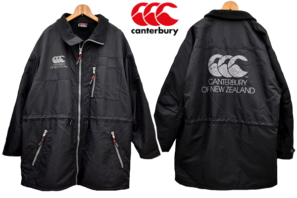 A-4930★CANTERBURY NEW ZEALAND カンタベリー ニュージーランド★秋冬 裏起毛 大きなロゴ 黒色 ベンチコート ジャンパー ジャケット L