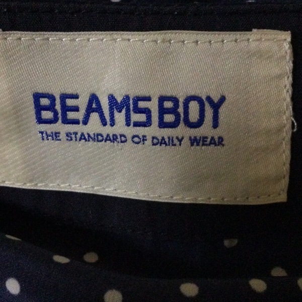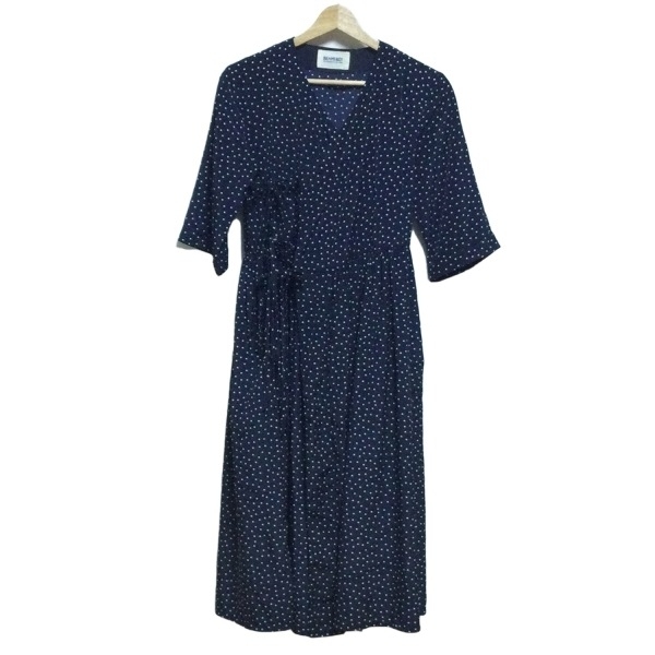 ビームスボーイ BEAMSBOY - ダークネイビー×白 レディース 七分袖/ロング/ドット柄/カシュクール ワンピース