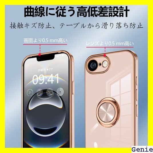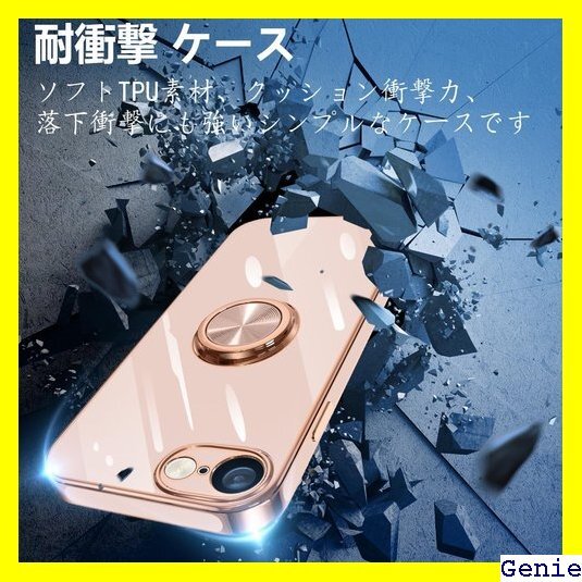 iPhone 16e ケース リング付き 耐衝撃 いp ル付き スタンド機能付き 360回転車載ホルダー ピンク 93