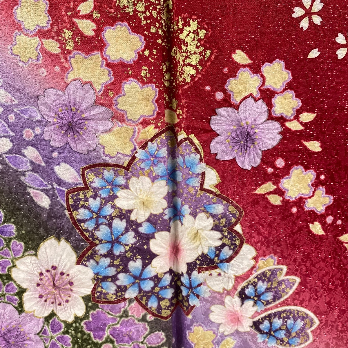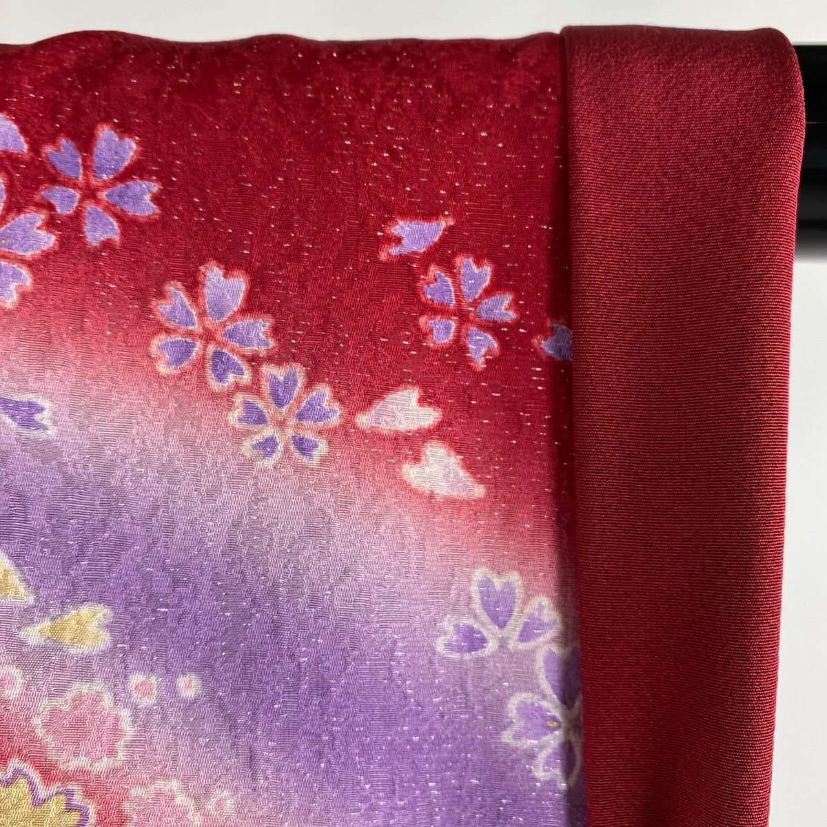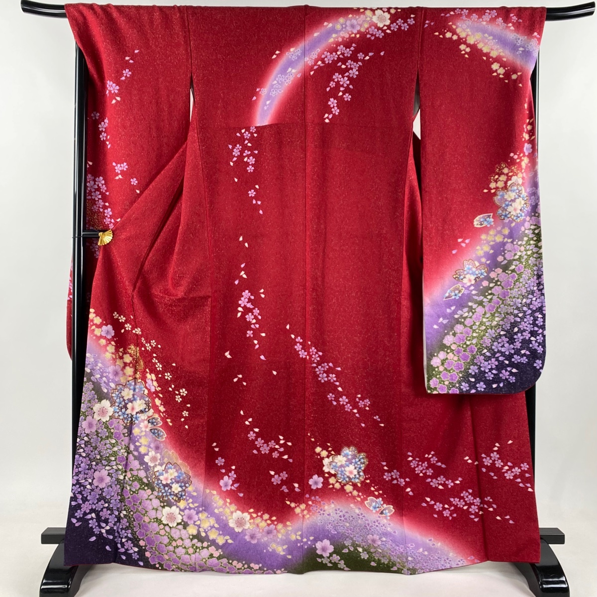 振袖 美品 逸品 やまと 桜 桜の花びら 銀通し 絞り 赤 袷 身丈167 裄丈69 L 正絹 【中古】 |