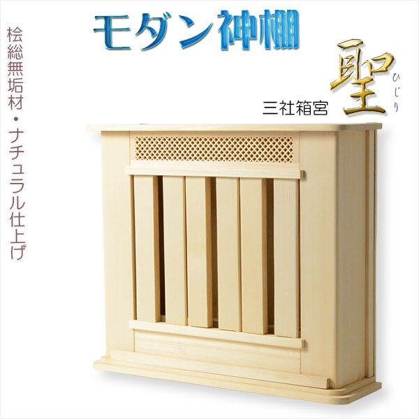 神棚【モダン神棚:三社箱宮 聖(ひじり)桧総無垢材・ナチュラル仕上げ】神道 神札 お札 札入れ
