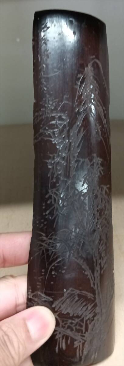 唐木 茶合 竹 山水 茶量 紫檀 茶道具