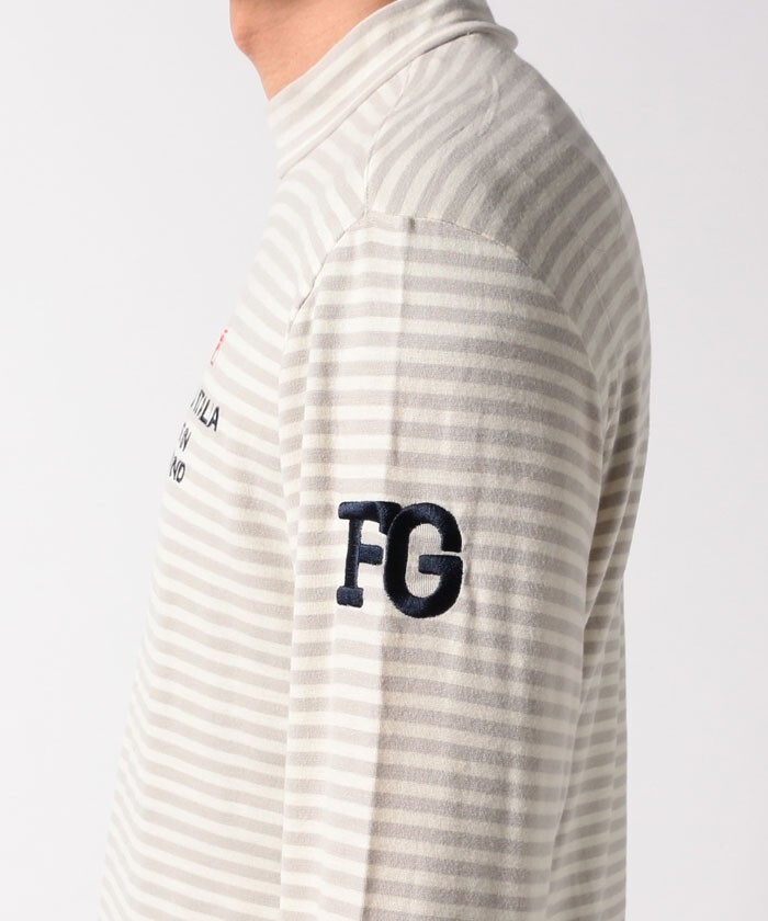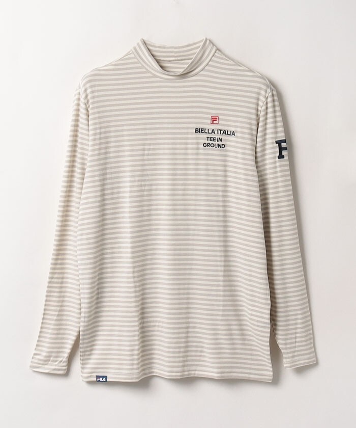 起毛蓄熱機能の素材で風合い良い先染めボーダーのモックネックシャツ。一枚でもインナーでも着用できる汎用性の高いアイテム。トーントーンのボーダーピッチでコーディネート性も抜群です。