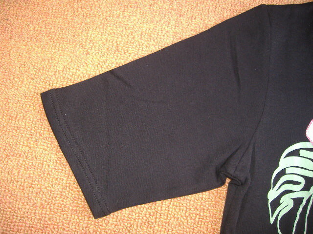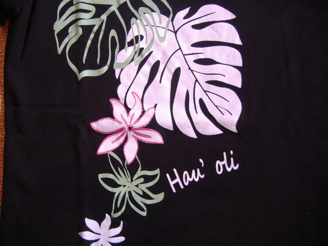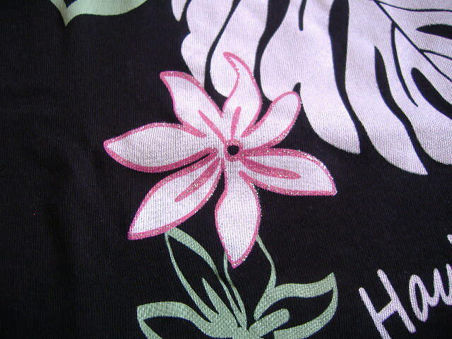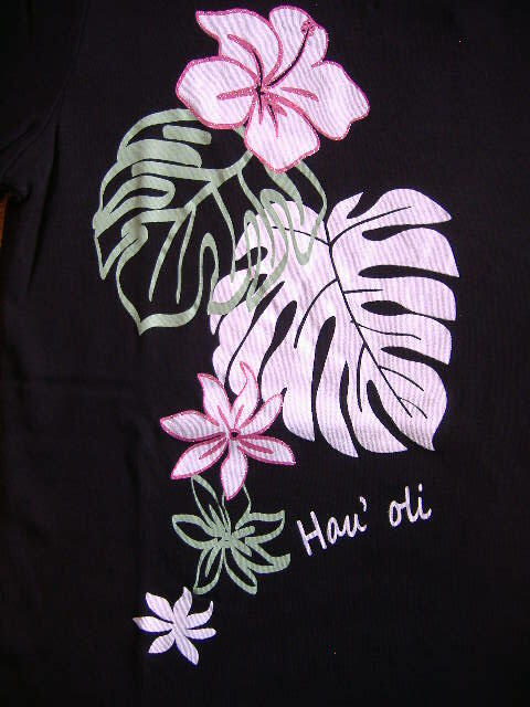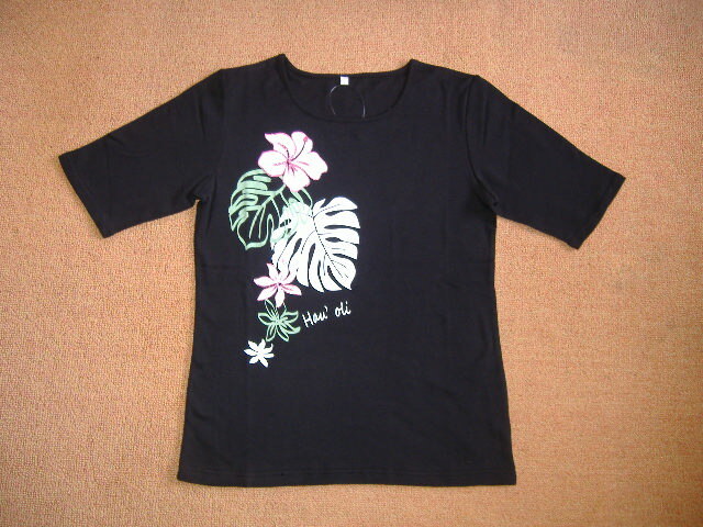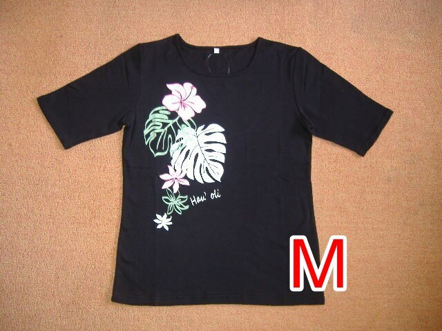 5分袖Tシャツ★ハイビスカス&モンステラ★黒★Mサイズ