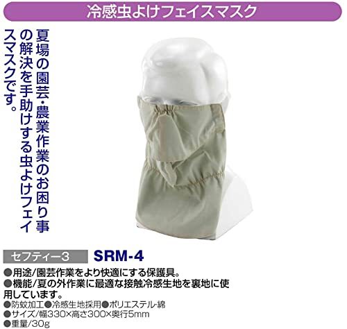 「商品情報」夏場の園芸・農業作業のお困り事の解決を手助けする虫よけフェイスマスク【用途】園芸作業をより快適にする保護具【特徴】・夏の外作業に最適な接触冷感生地を裏地に使用・表地は虫が寄りにくい虫よけ加工生地のため、蚊などから身を守る・日焼け対策品としてもご使用できる「主な仕様」用途:園芸作業をより快適にする保護具特徴1:夏の外作業に最適な接触冷感生地を裏地に使用特徴2:表地は虫が寄りにくい虫よけ加工生地のため、蚊などから身を守る仕様:防蚊加工・冷感生地採用材質:ポリエステル・綿