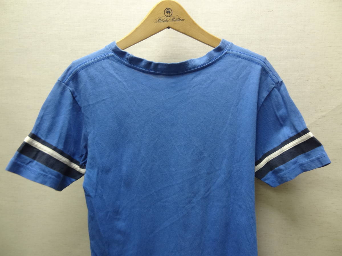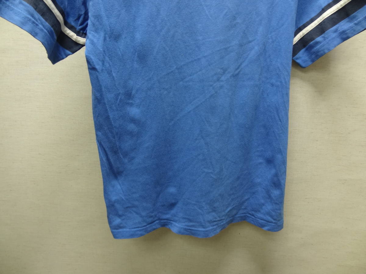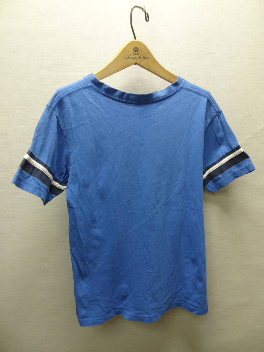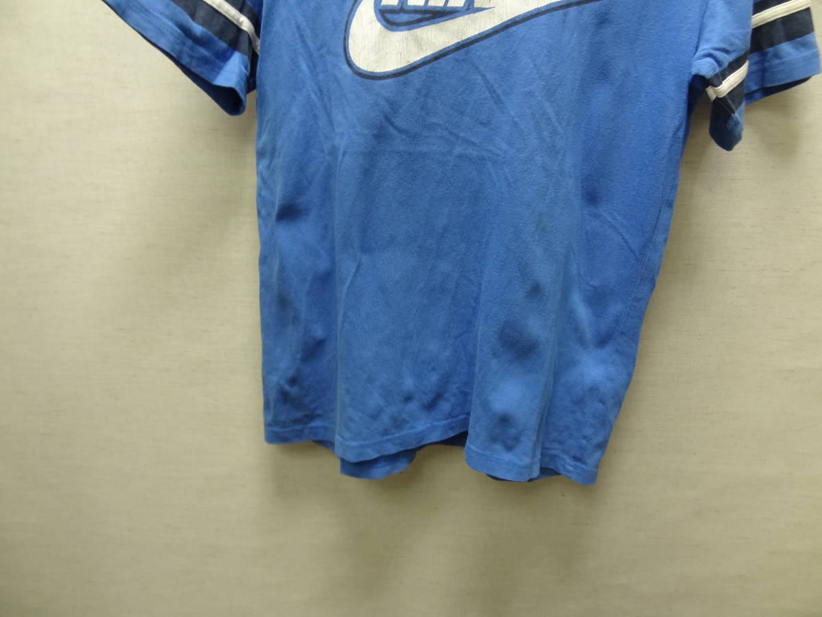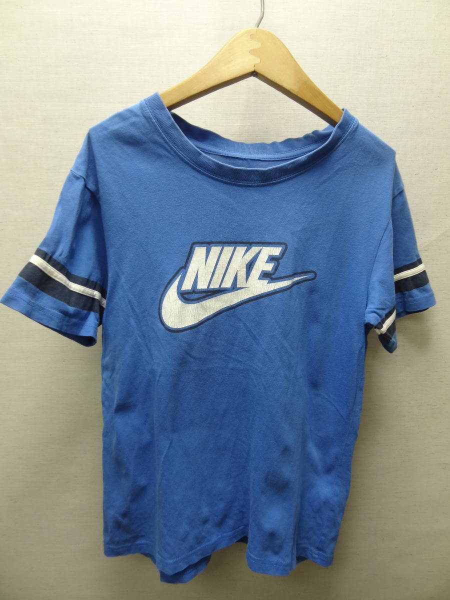 全国送料無料 ナイキ NIKE 子供服キッズ 男&女の子 綿100%素材 半袖 青ブルー色ロゴ&袖ラインTシャツ 140(S)