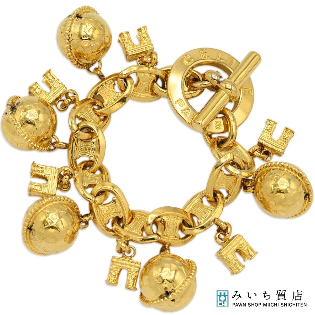 | セリーヌのスターボール 凱旋門 ブレスレット です。ABランク:小傷やメッキれが見受けられますが、比較的状態の良い商品です。 |