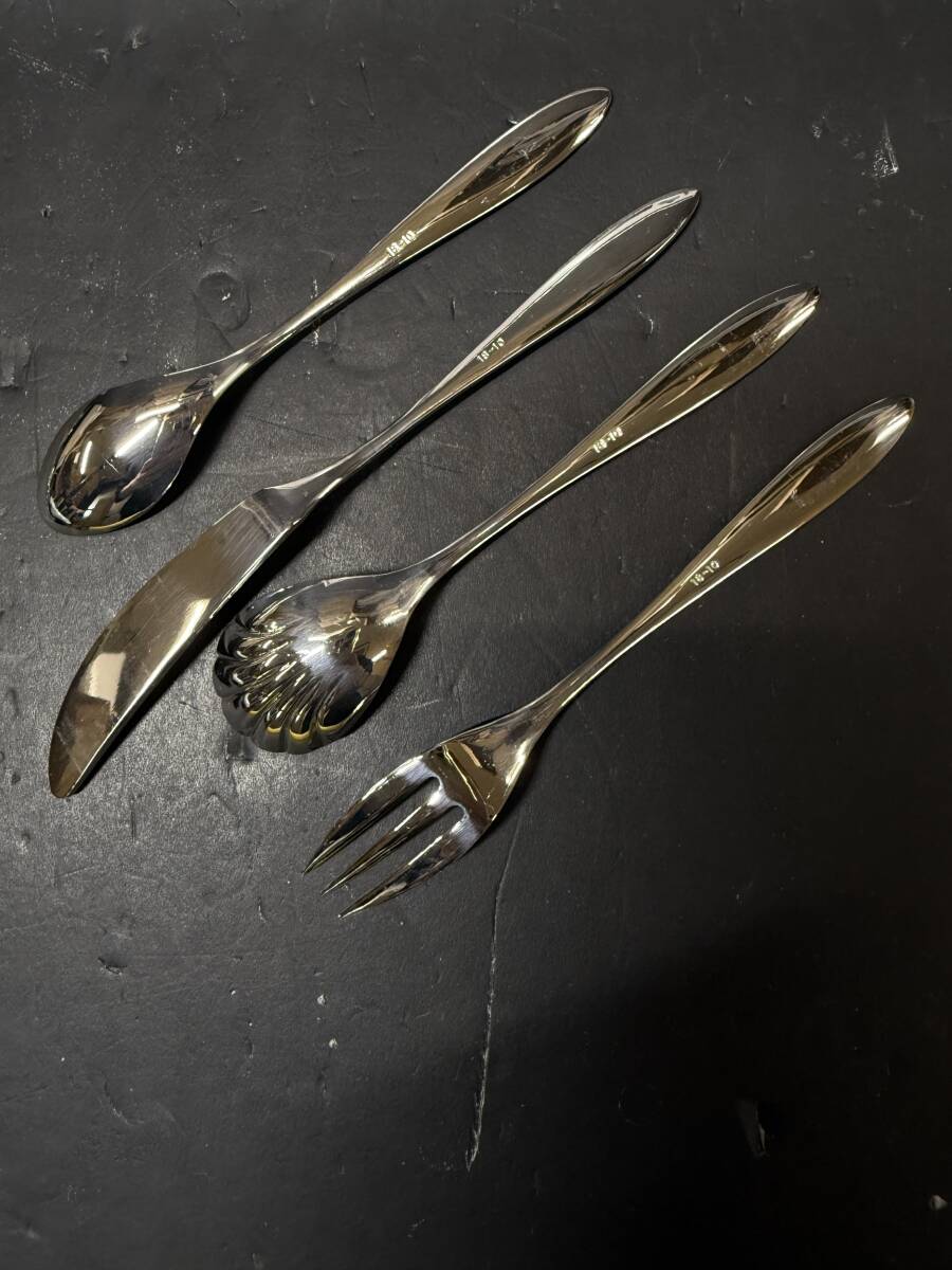 カトラリーセットの出品です。 未使用品ですが長期保管になります。 経年による傷や汚れなどはご了承ください。 上記ご理解の上ご検討ください。 状態など写真にてご確認ください。 基本的には used品の出品になります。 本文の記載事項があっても 現物優先とさせていただきます。 予めご了承下さいませ。 動作確認済みの物でも、時間の経過後の動作の保証はできません。 その他不明な点がございましたら、当方がわかる範囲にてお答えします。 |