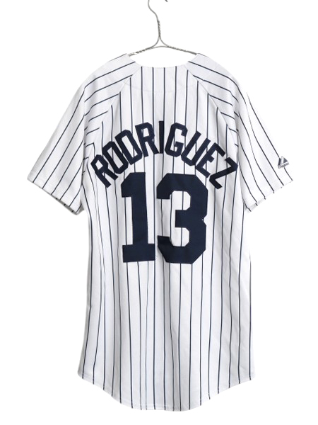 MLB オフィシャル NEW YORK YANKEES ニューヨーク ヤンキース の半袖ベースボールシャツです。 ボディーは、Majestic ATHLETIC(マジェスティック) 1950年代創業、MLB公式ユニフォームのサプライヤーとして 全球団のユニフォームにロゴを配することを許可された唯一のブランド 素材は、100% POLYESTER ( ポリエステル ) 伸縮性のある、しっかりとしたジャージ素材を使用しています。 左胸にMLB、人気チーム、ヤンキースのワッペン バックに1994年 ~ 2016年まで活躍した Aロッドこと、 アレックス・ロドリゲス(Alexander Rodriguez )のネームと背番号13 数々の個人タイトルを獲得した、説明不要のスーパースター ホワイト × ネイビーの好配色チームカラー ストライプ ヤンキースストライプがクールなグッドデザイン そのままでももちろん、重ね着にもお勧め 着まわしの利く商品です。 |