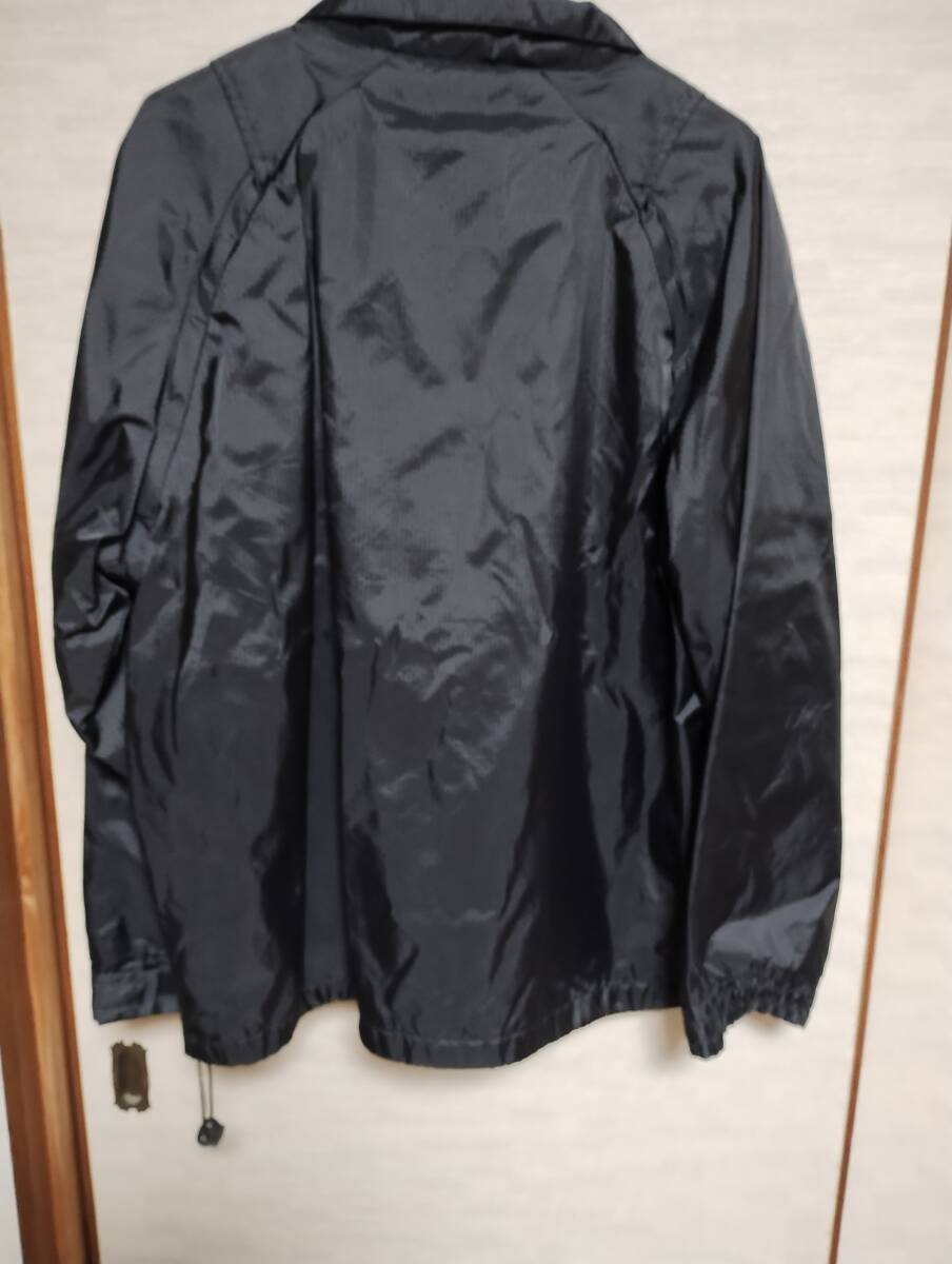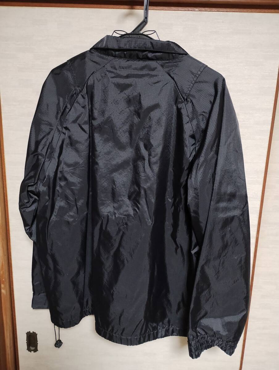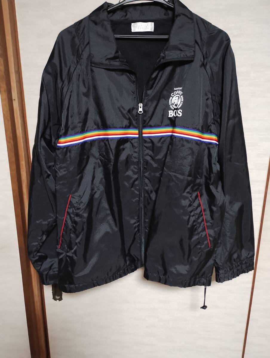 超希少、BOSSオリジナルデザインのナイロン素材のブラックジャケット、ストライプデザインとジッパー付き。