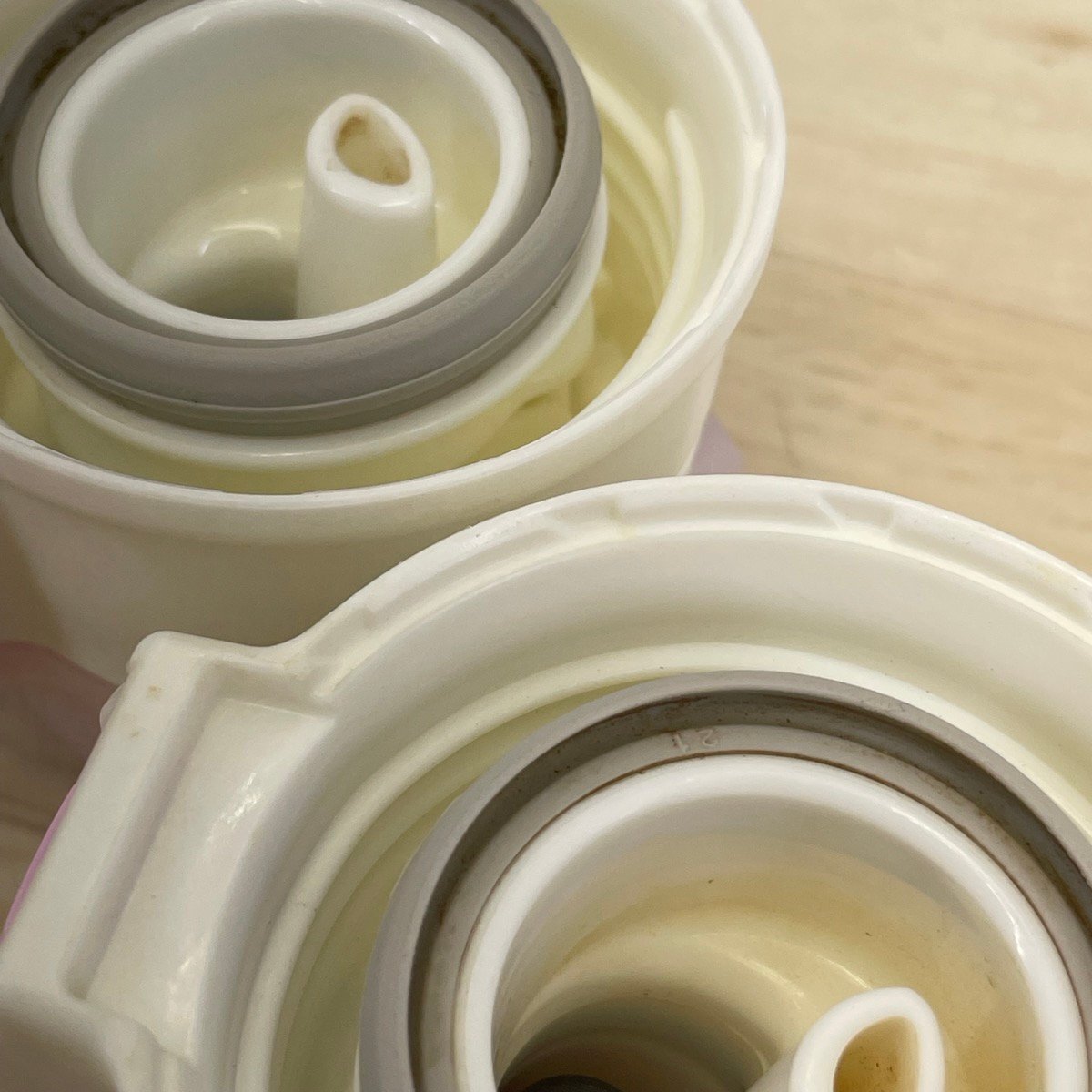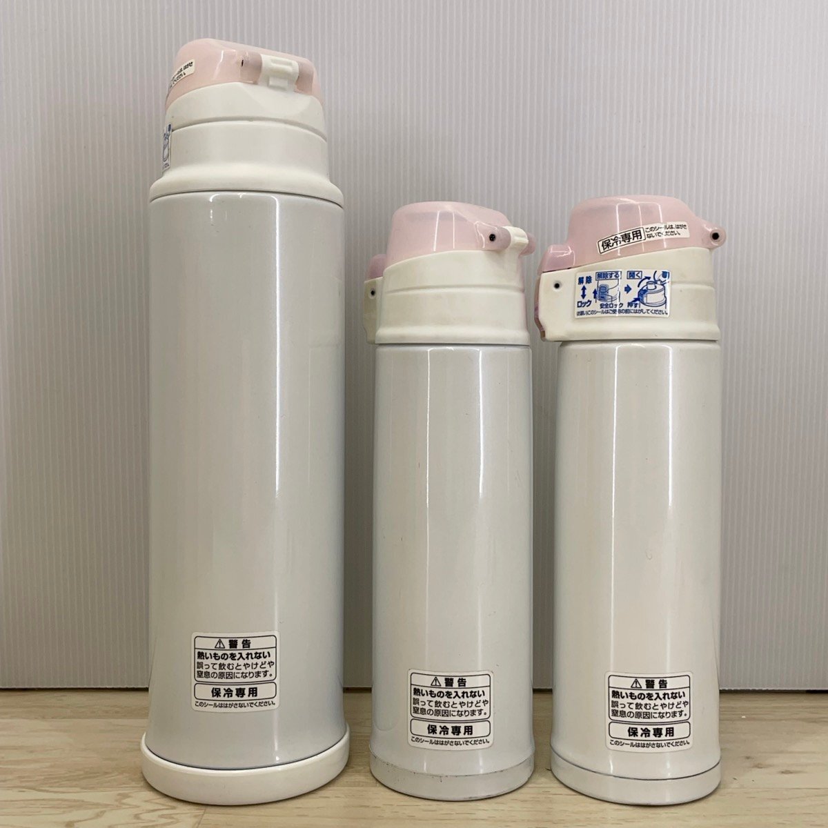 小さい水筒は2つ共、ボディのヘコみやパッキンの汚れ、水筒内の汚れ具合等全体的にダメージがあります。