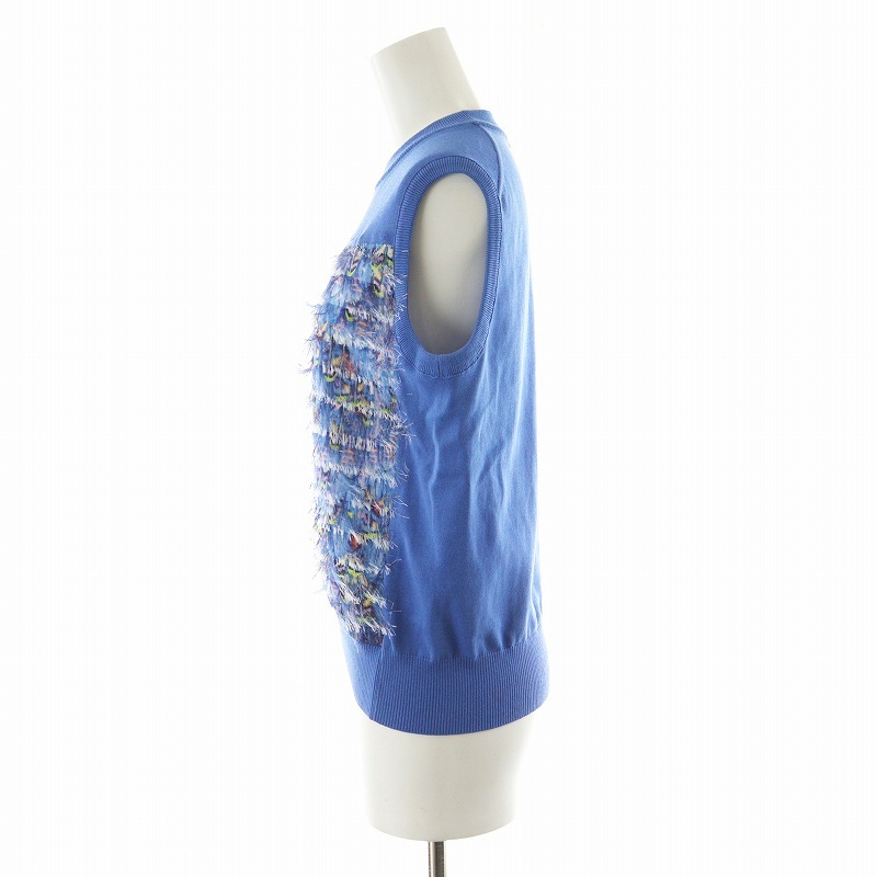 アナイ ANAYI 24SS フランジャプリントノースリーブ アンサンブルニット カーディガン 38 水色 ライトブルー
