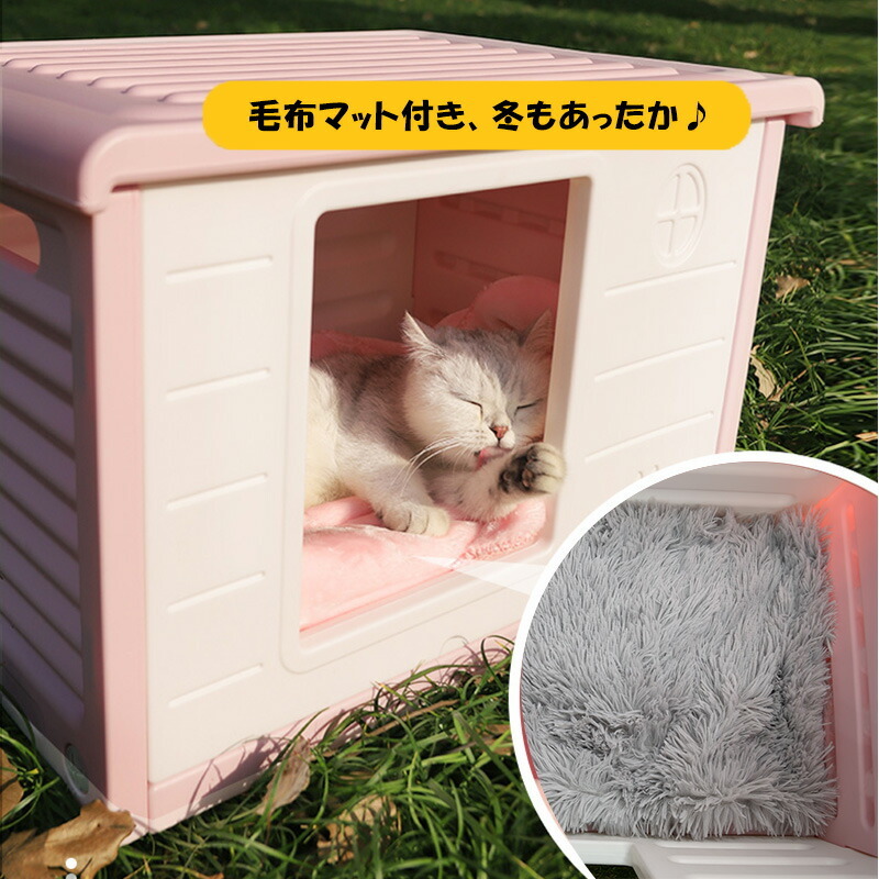 犬小屋 猫ハウス 屋外 防雨 換気 毛布付き 四季通用 防寒 簡単組立 滑り止め 耐荷重50kg 耐腐食 防水 通気性 静音性 ペットベッド 小型犬 猫用 室外 ベランダ 庭 手で締めるネジ 高品質PE製 梅雨対策 野良猫 雨よけ 避難所 防風"