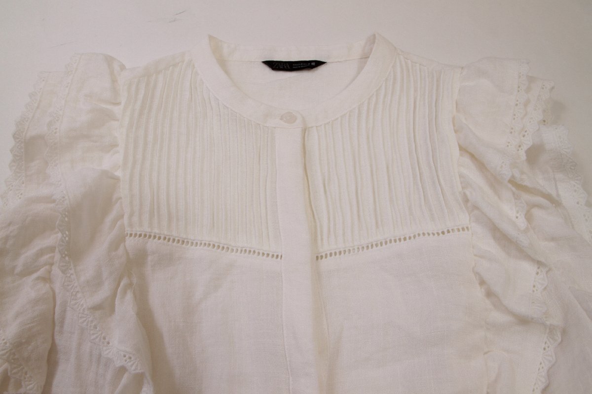 | 商品名 | ZARA◆ザラ レーストリムフリルブラウス ノースリーブブラウス ホワイト USAサイズM |