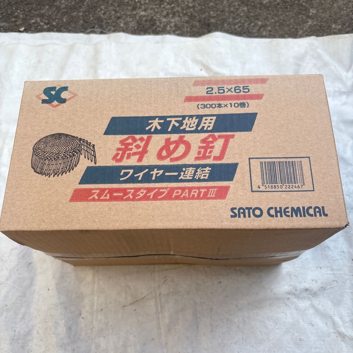 佐藤ケミカル、木下地用、斜め釘、ワイヤー連結、スムースタイプPART III、2.5X65、300本X10巻、3000本、未使用、保管品です。