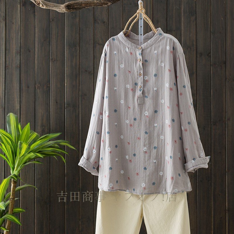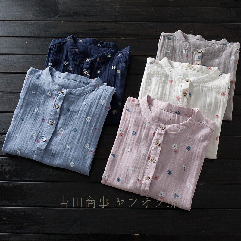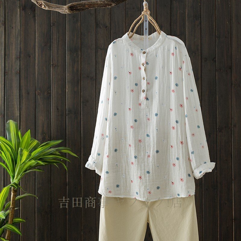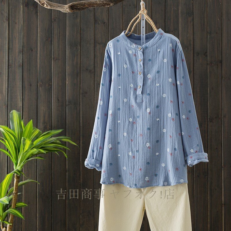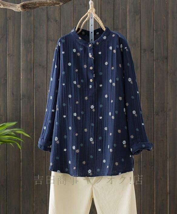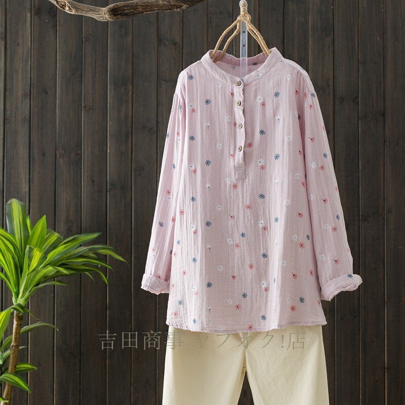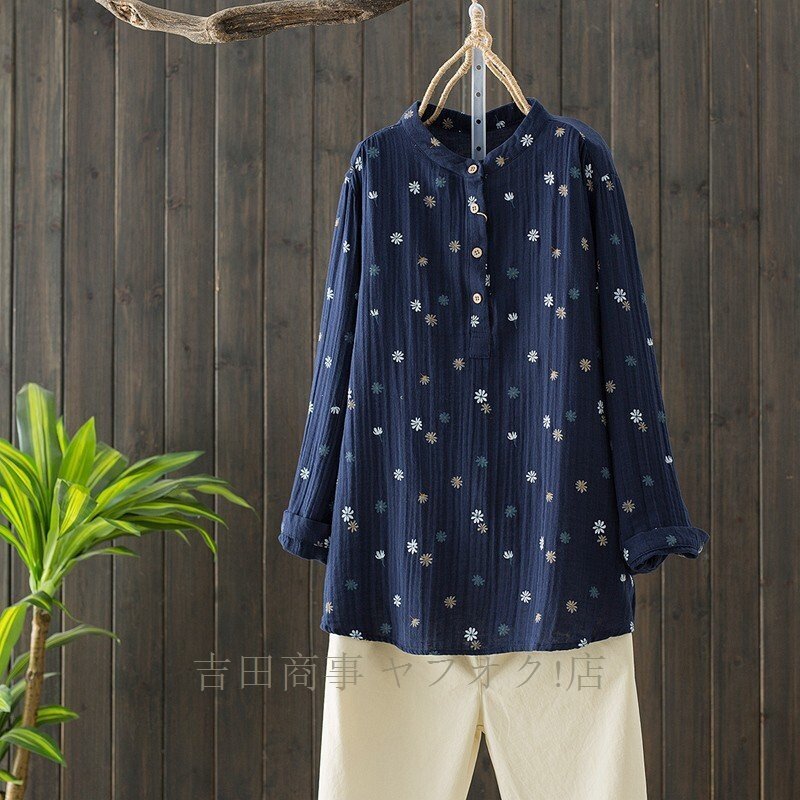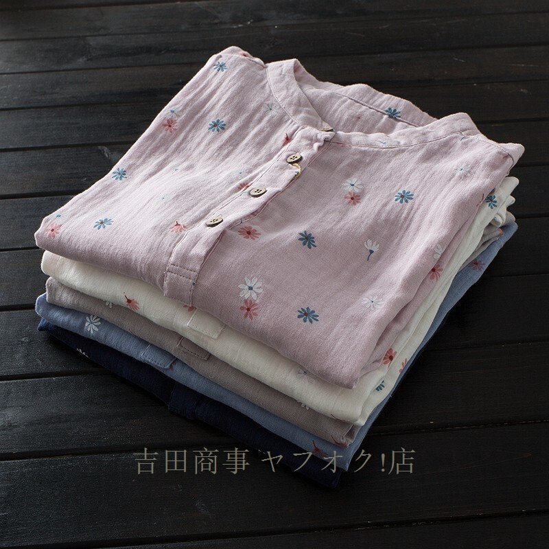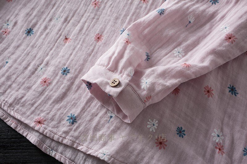 ★新品ダブルガーゼ プリント柄 オシャレ ワイシャツ トップス チュニック 大人可愛 フリーサイズ ナチュラル 綿100% コットン