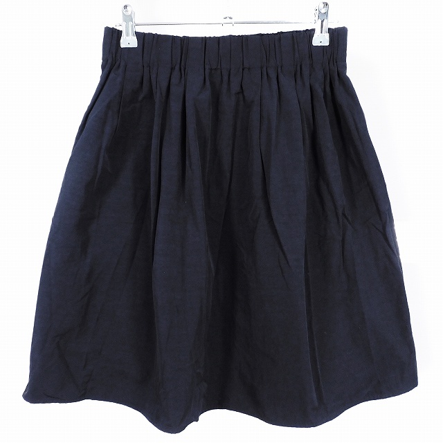 ニーム NIMES フレアスカート ひざ丈 ギャザー ウエストゴム ナイロン 無地 黒 ブラック ボトムス /T2 レディース