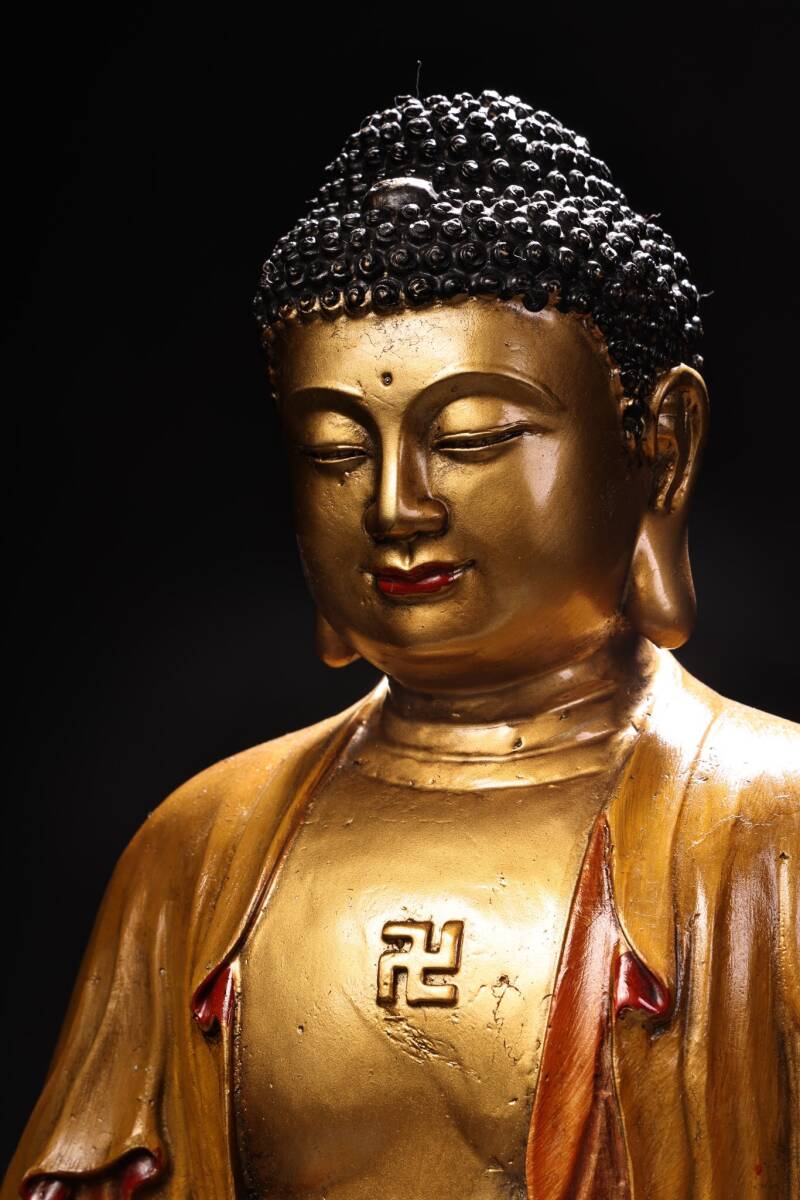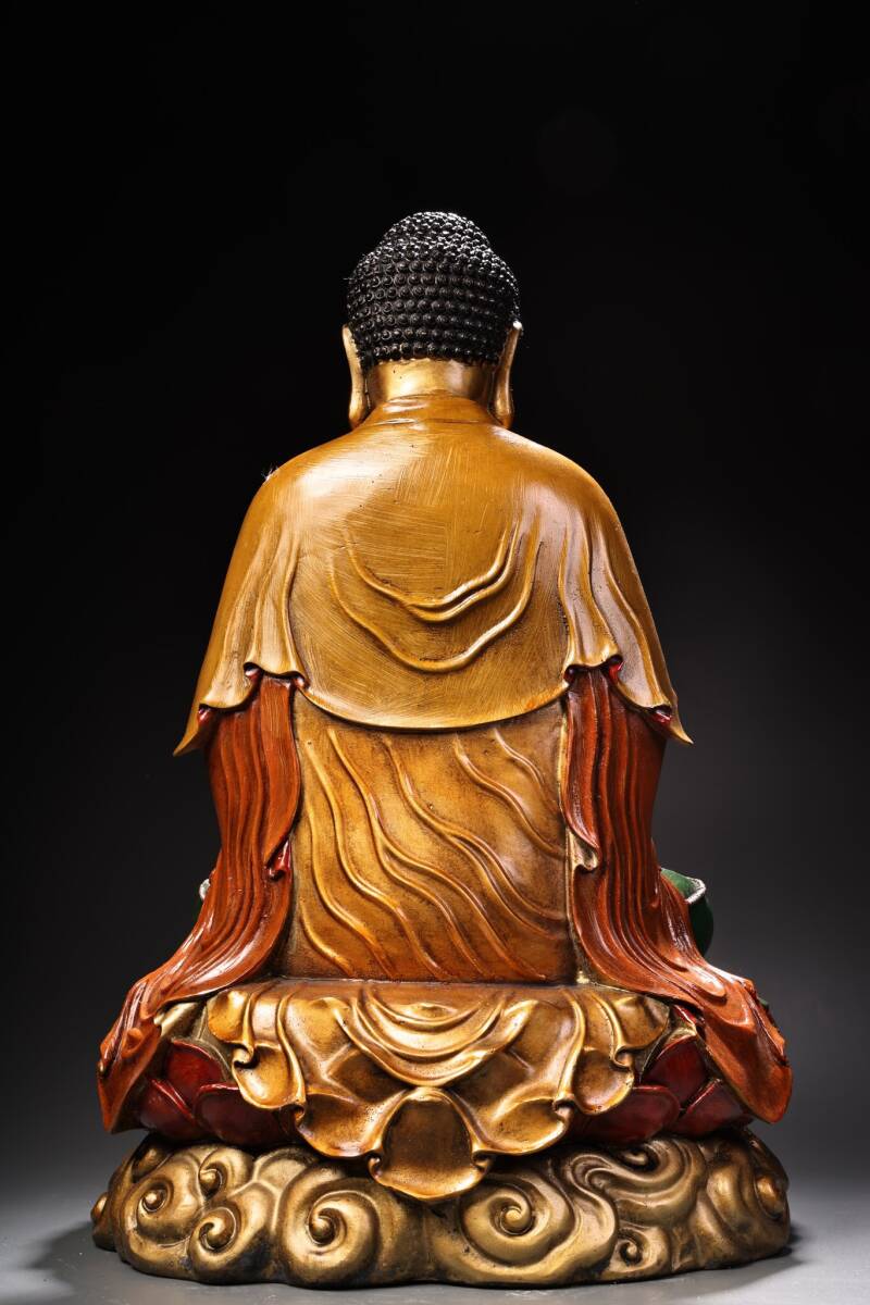 【超珍館蔵】銅製 描金 彩繪 釋迦牟尼像 仏像 宗教 仏教古美術 供養品 古賞物 古董品 古美術品 時代物 旧家蔵出 稀少珍蔵品