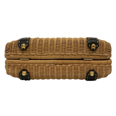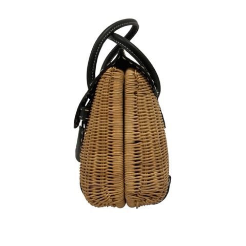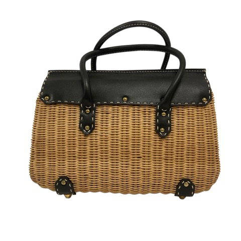 カシェリエ Cachellie かごバッグ ハンドバッグ 切替 レザー ステッチ ベージュ 黒 ブラック レディース
