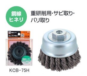 日本製 株式会社錦(nishiki) 健工快速 カップブラシ 鋼線ヒネリ 75mm KCB-75H ※436101 ☆重研削用・サビ取り・バリ取りに