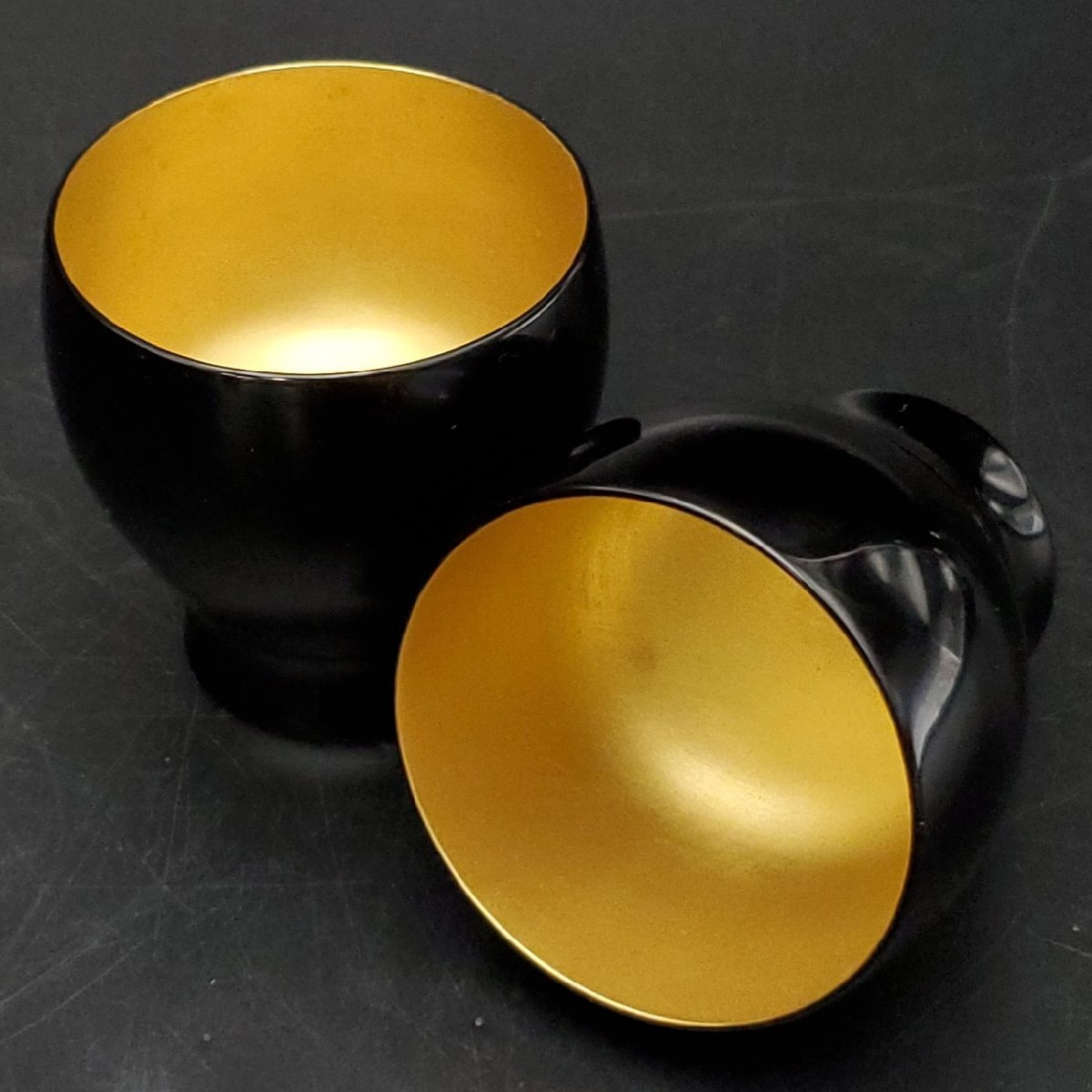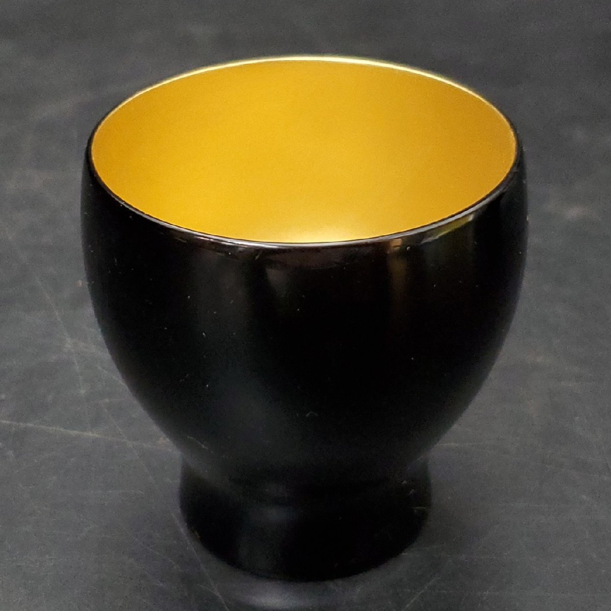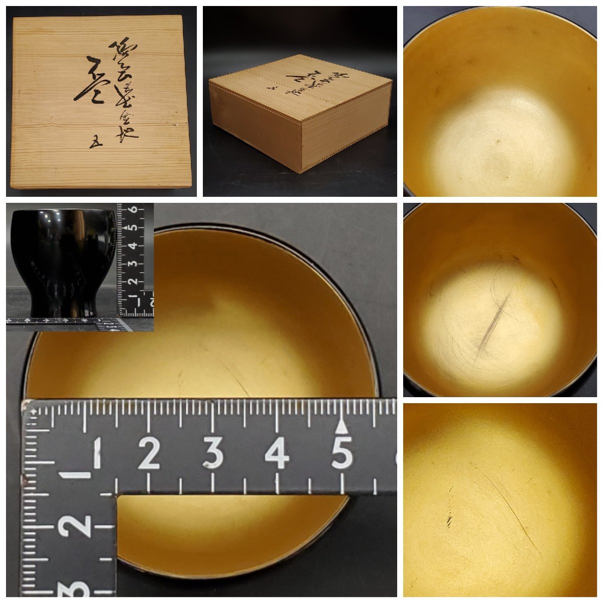 【宝蔵】輪島塗 黒塗内金地 酒盃 杯 5客 口径約5.5cm 酒器 共箱
