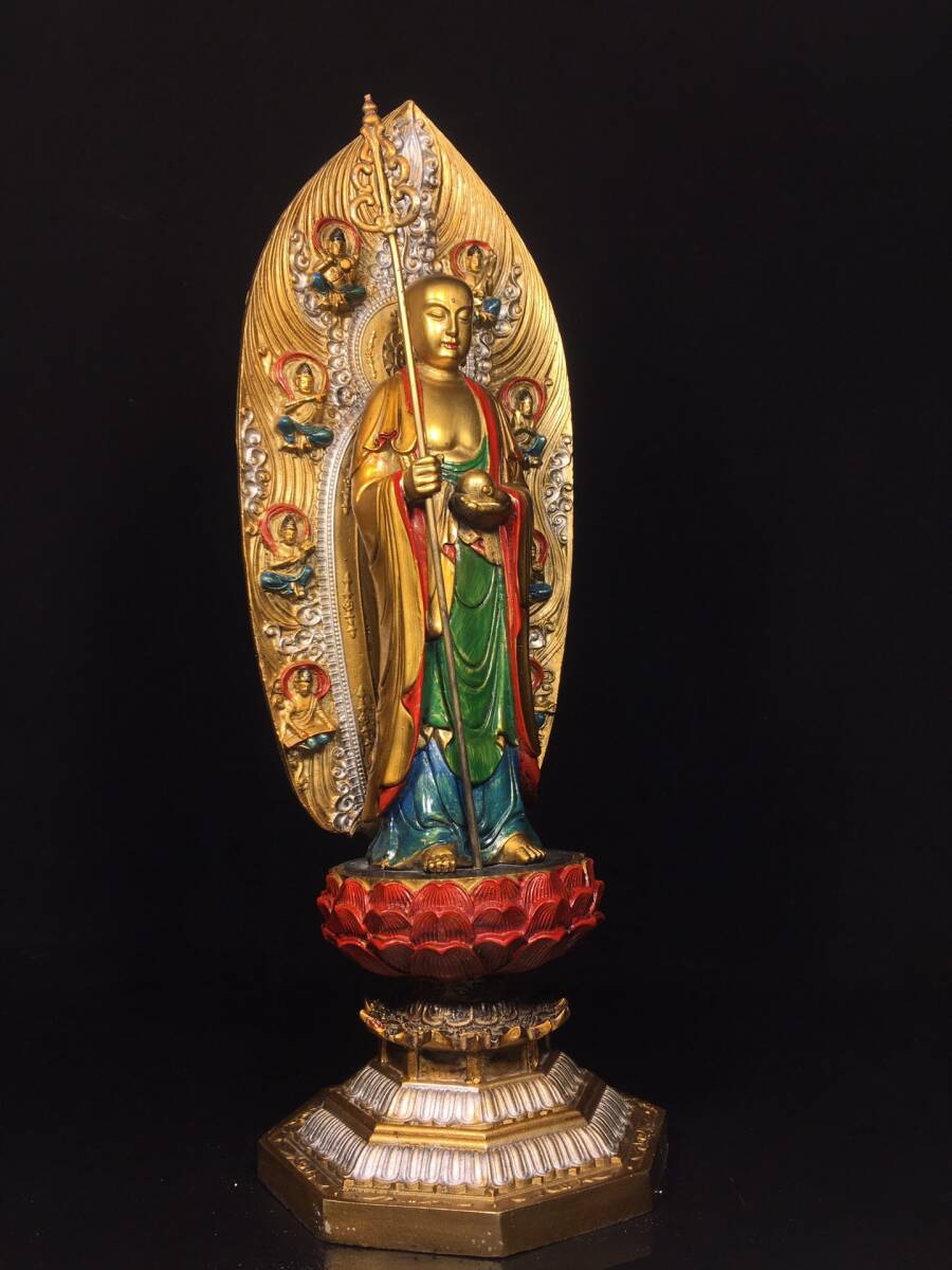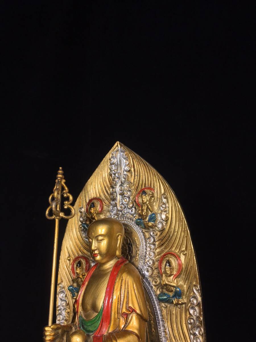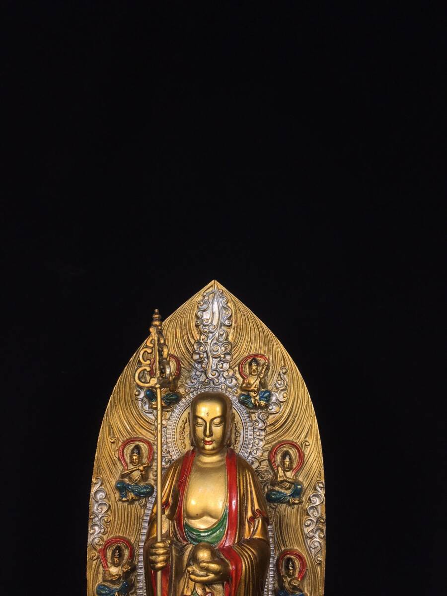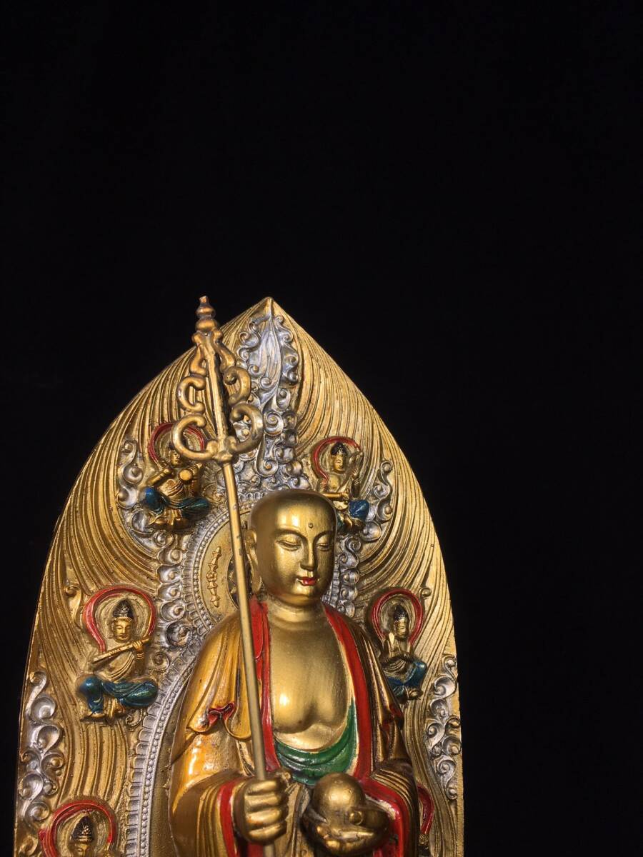 | 【蔵友館蔵品・銅製・金鍍・彩繪・地藏王菩薩像・仏像・宗教・仏教古美術・供養品】・古董品・中国古玩・時代物・希少珍品・中国時代美術 |