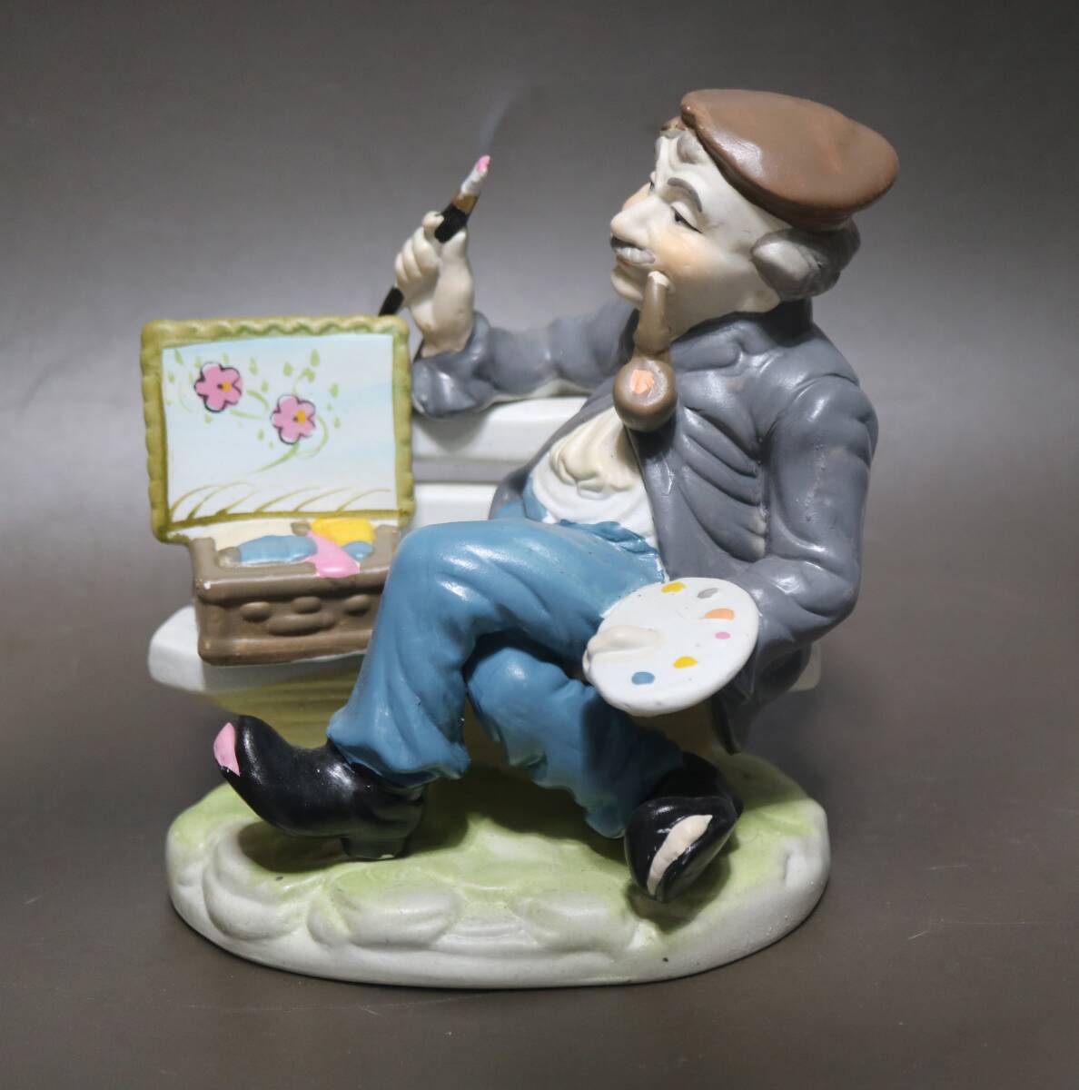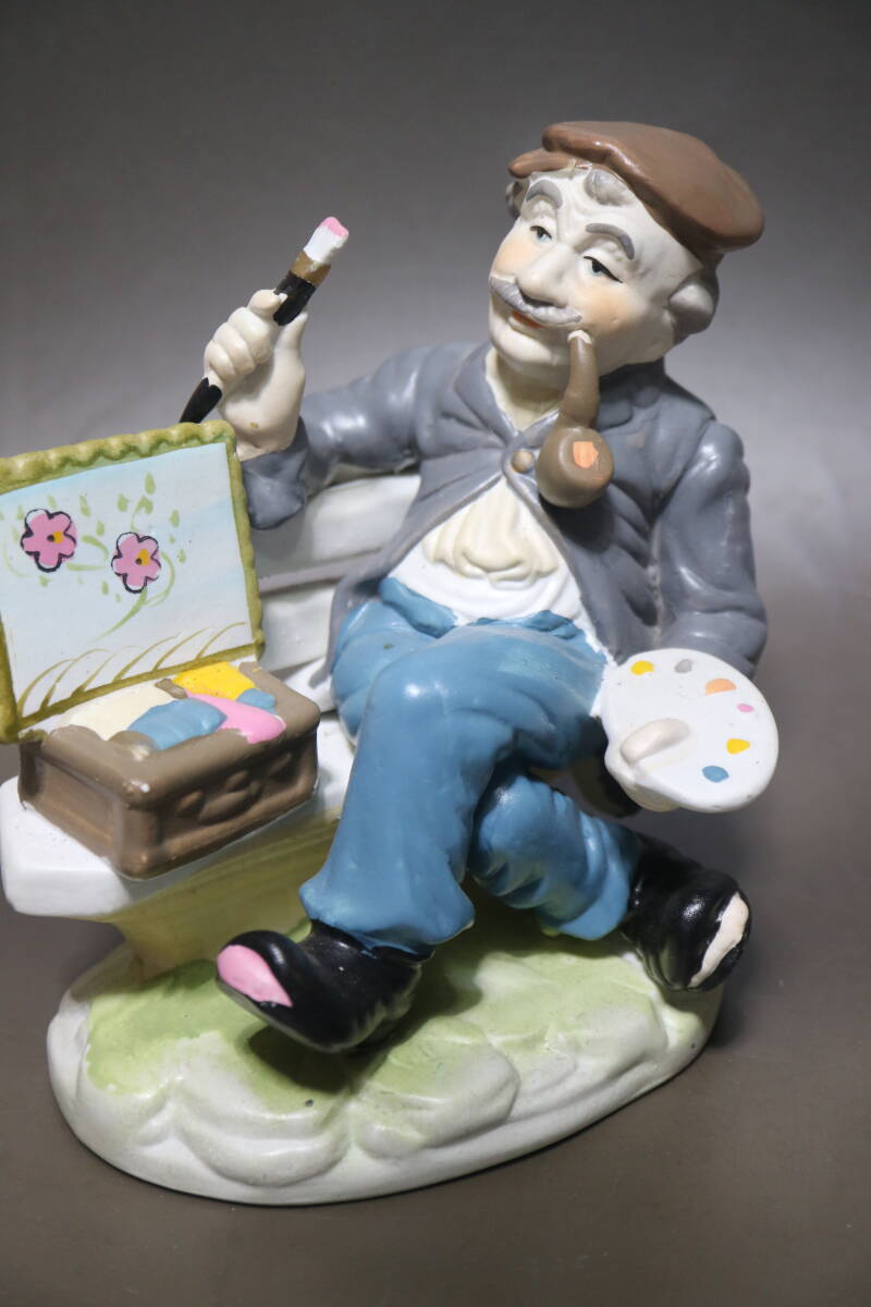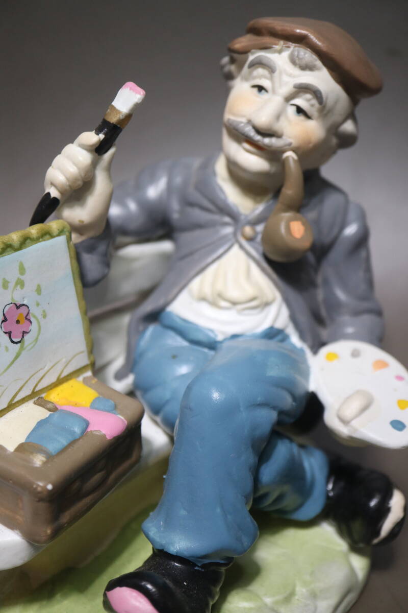 ヴィンテージ ファインセラミック手作りハンドペイント置物 芸術的な画家の置物です。