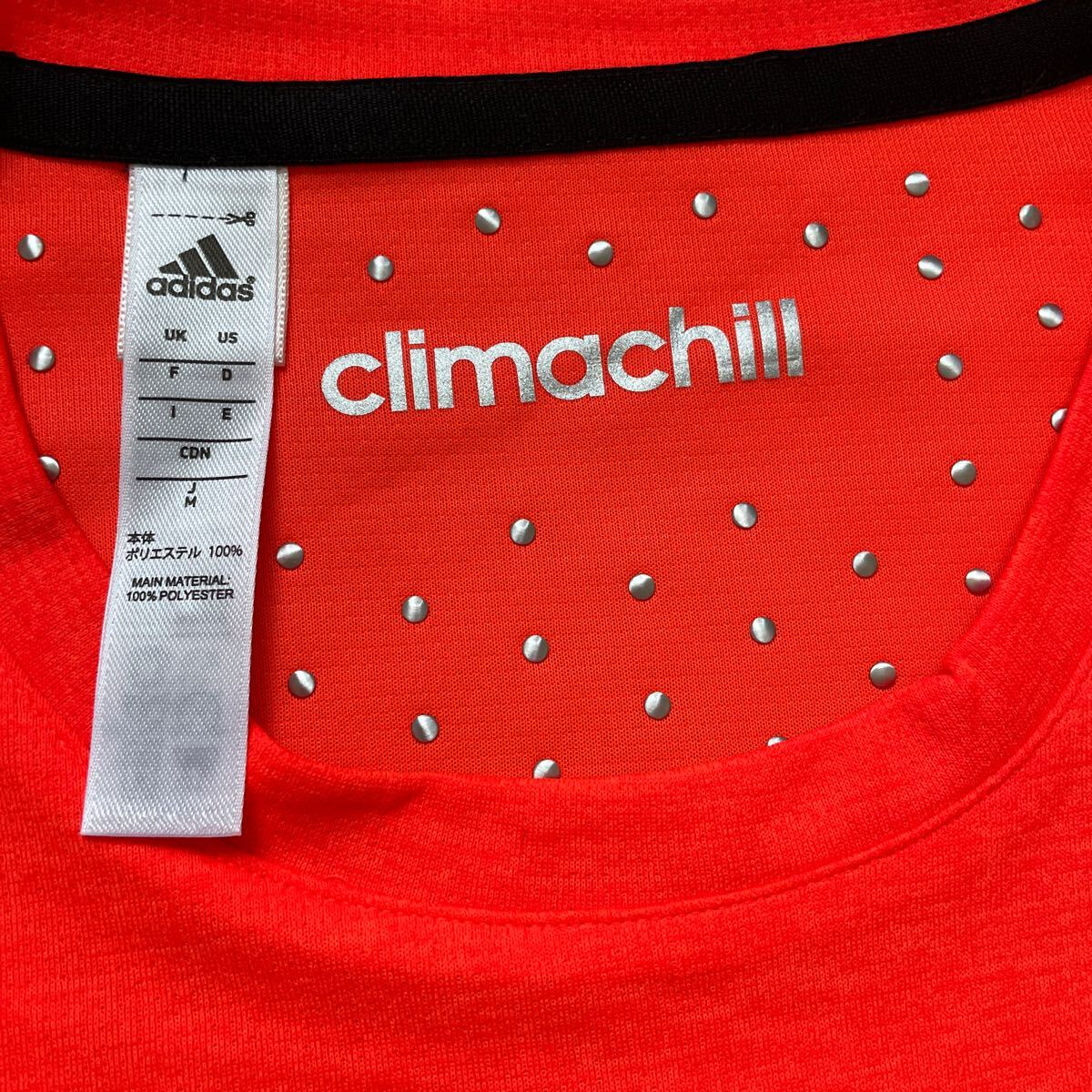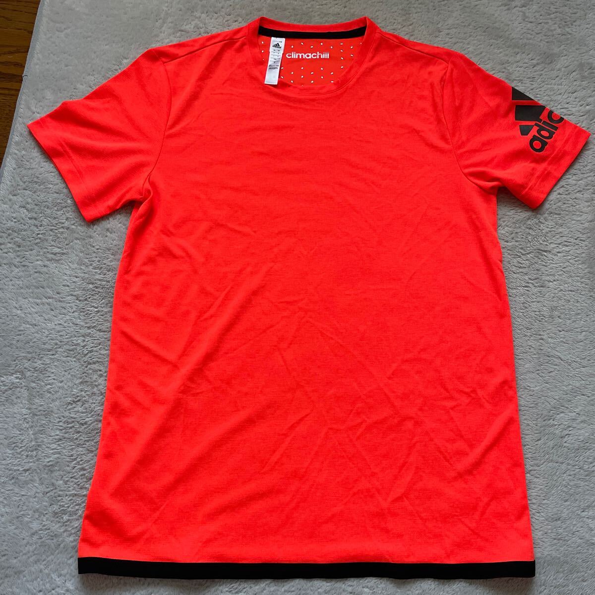 通気性に優れたclimachill素材のオレンジTシャツ。