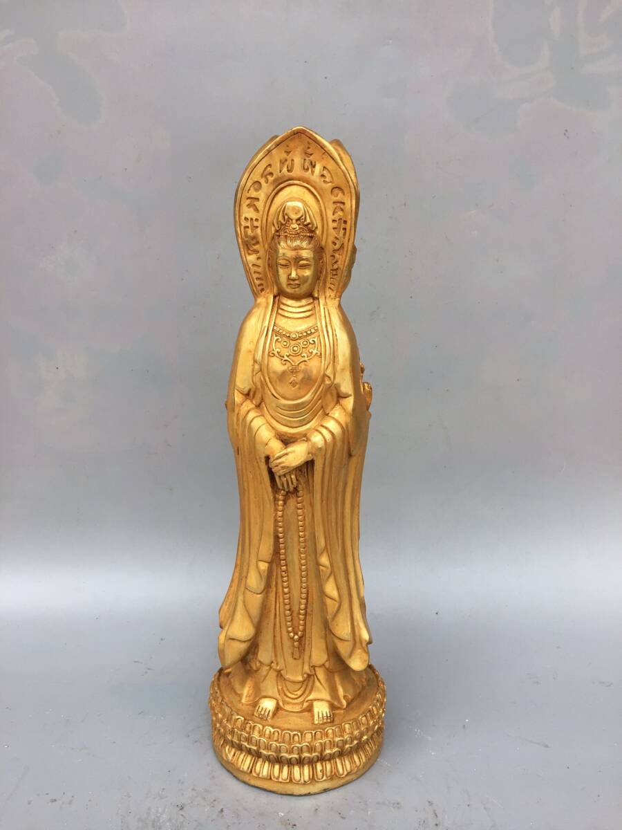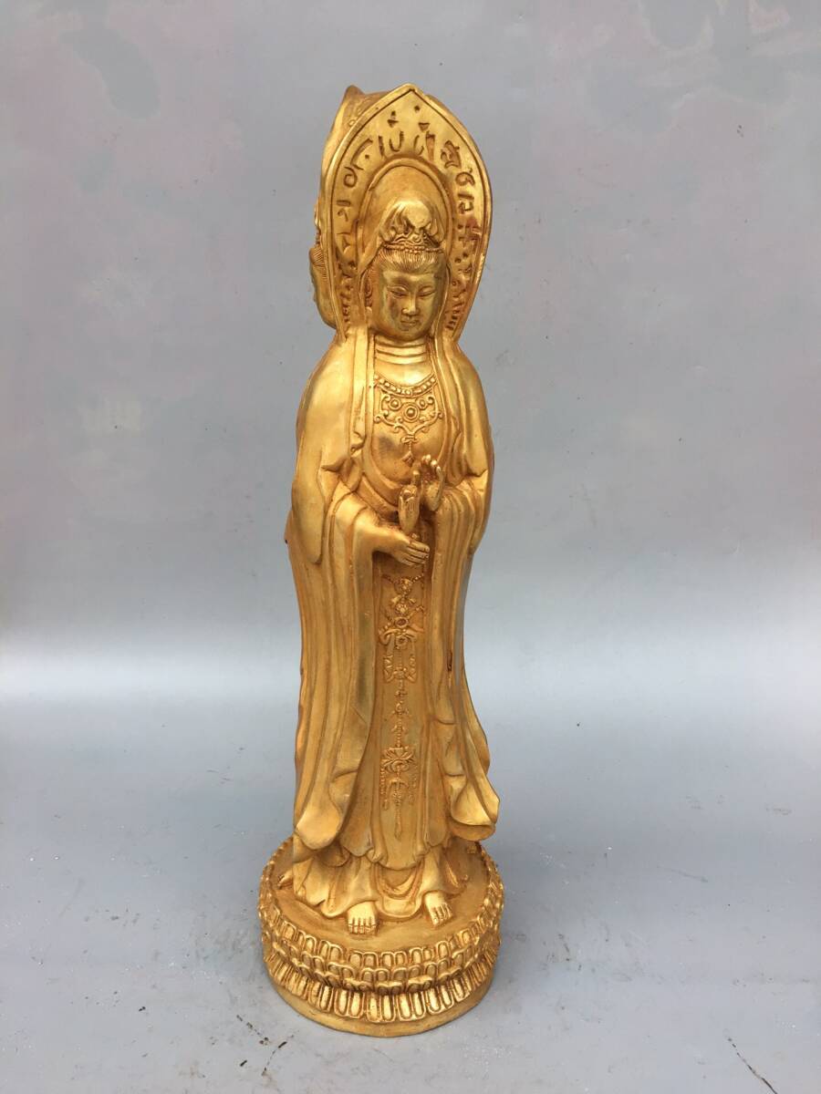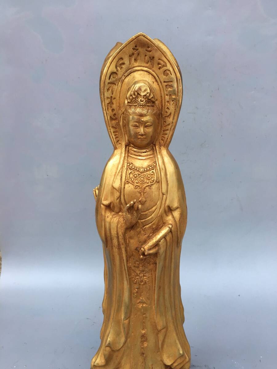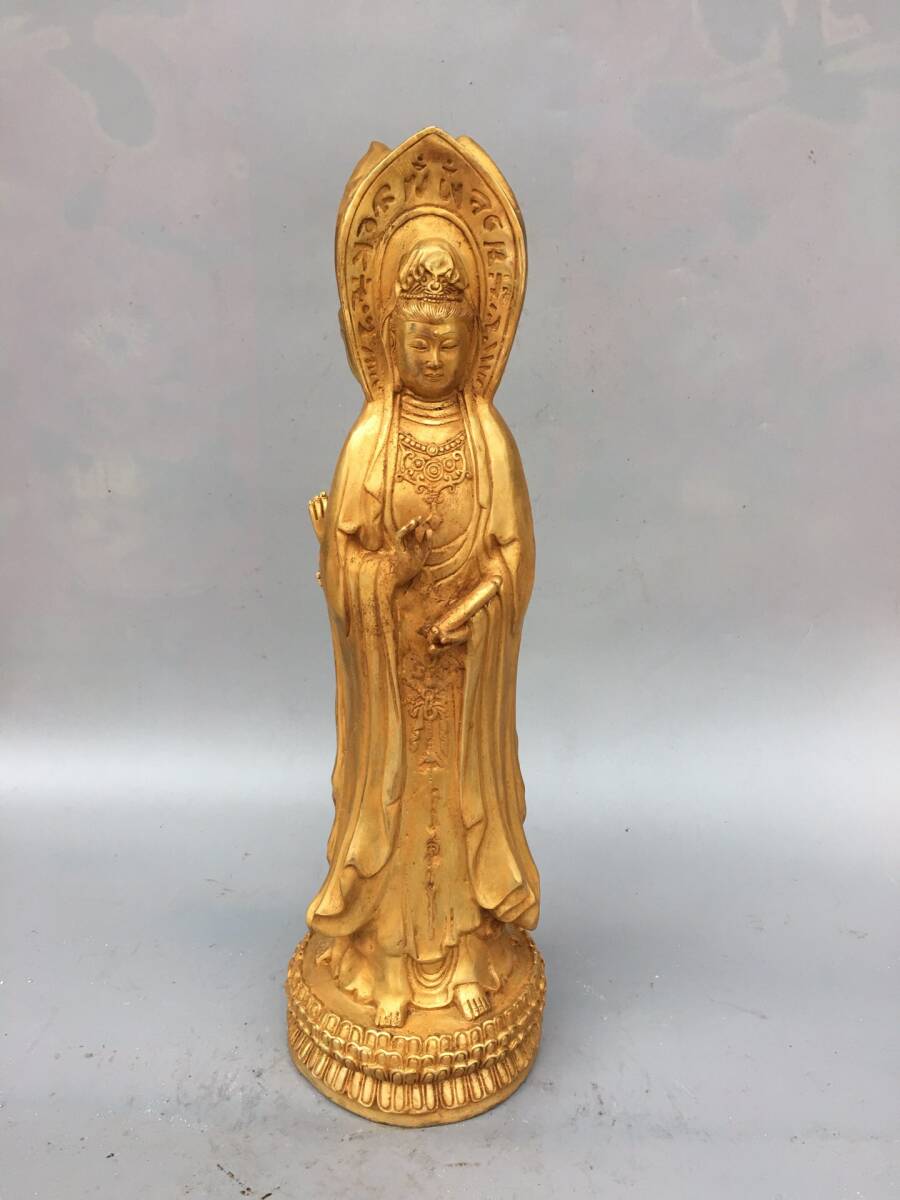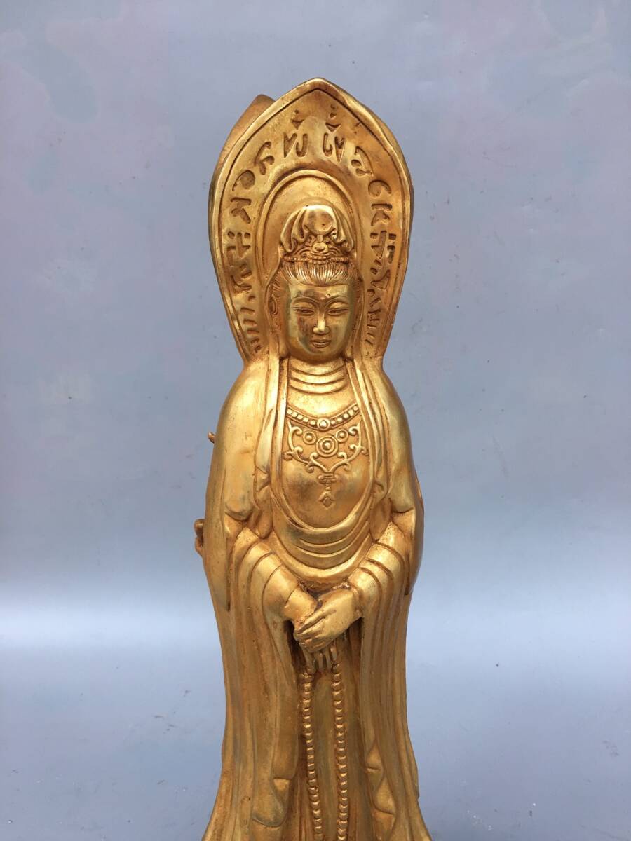 | 【蔵友館蔵品・銅製・塗金・三面觀音像・仏像・宗教・仏教古美術・供養品】・古董品・中国古玩・時代物・希少珍品・中国時代美術 |