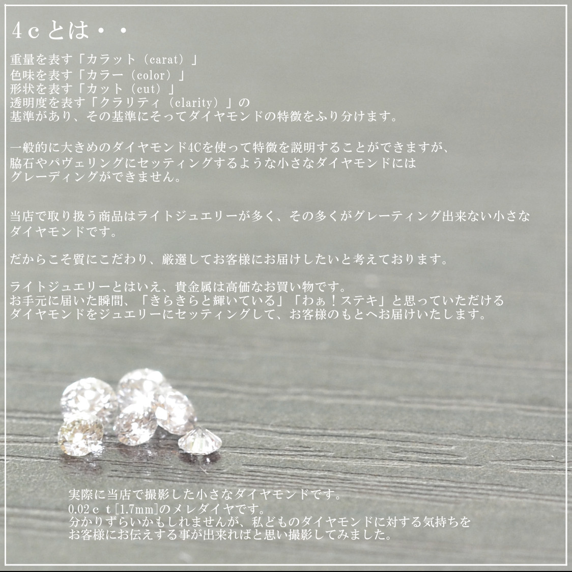 | 宝石名 | 天然ダイヤモンド3石 0.06カラット |