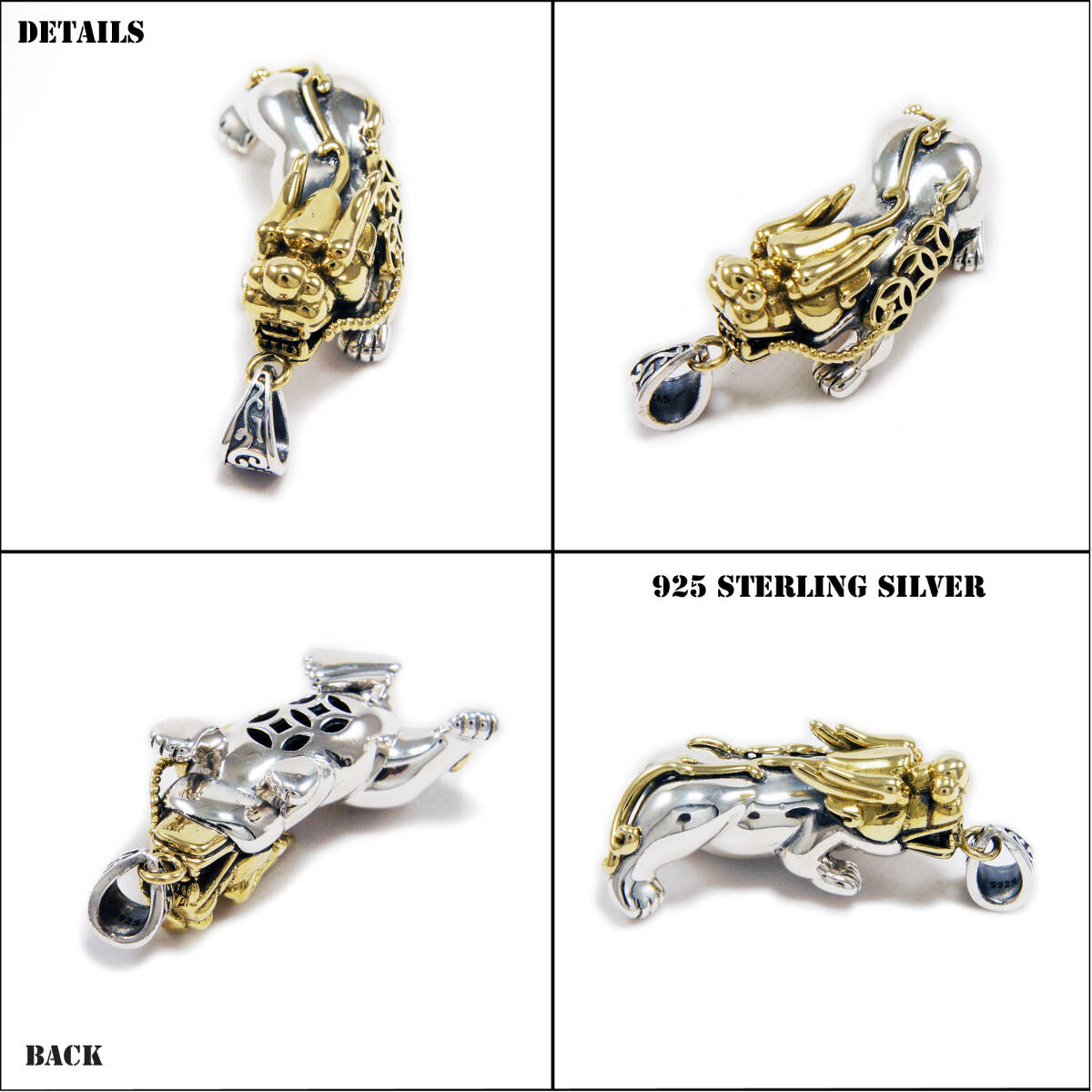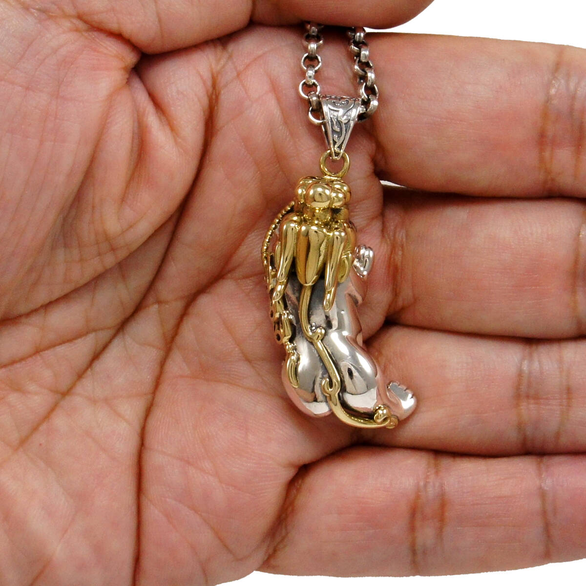 獅子 真鍮 925シルバーペンダント 925刻印ありYIN-030