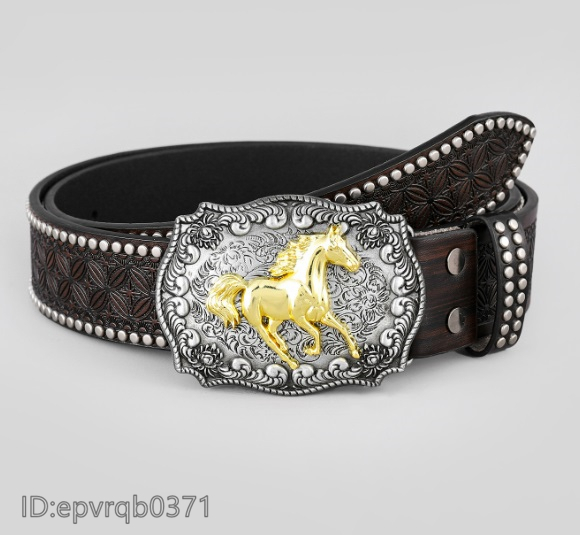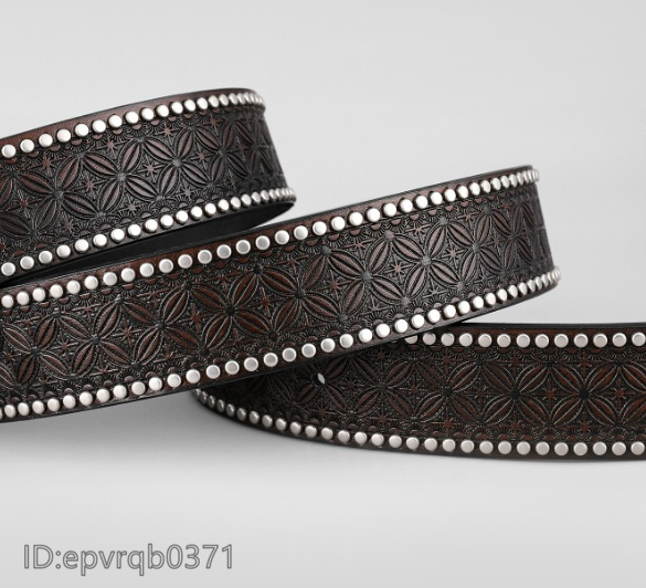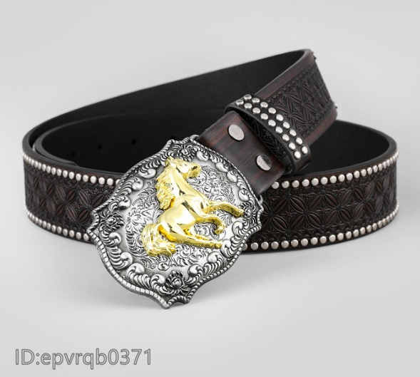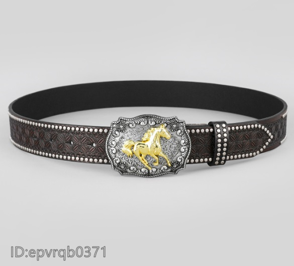 ベルト◆新入荷 メンズ レザーベルト ピンバックル式 金属バックル 馬バックル 柄物 革ベルト ポンチ付き 長さ調整可能 ゴールド/茶色