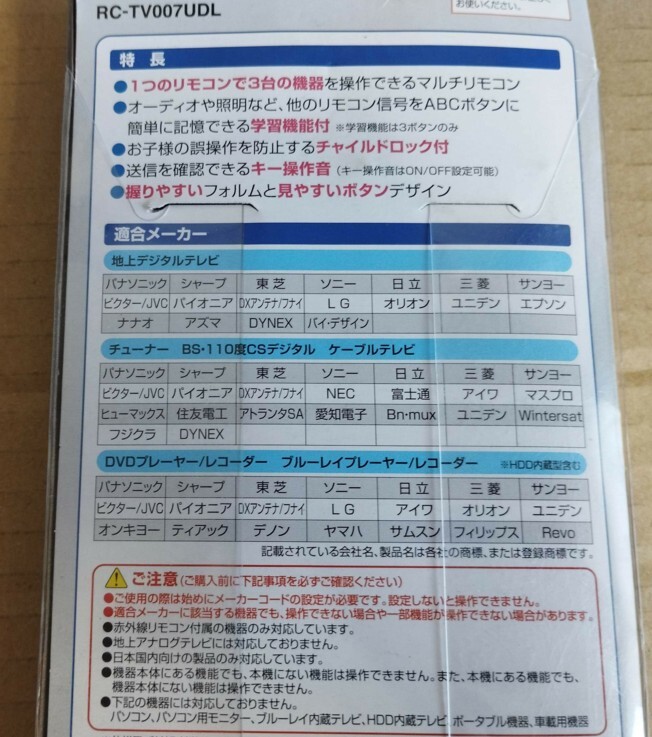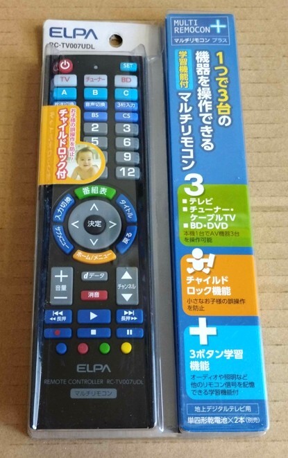 ラスト1点・送料込み 新品 ELPA 学習機能付 マルチリモコン リモコン1台で機器3台を操作 RC-TV007UDL 学習リモコン メーカー共通