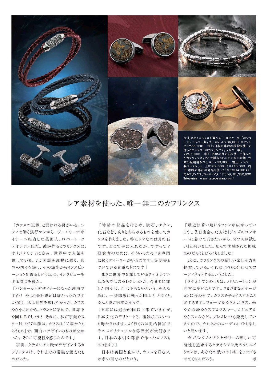 ブランドの代名詞となっているのは「カフリンクス」。当時、ビジネスシーンで使われるカフリンクスは限られたスタイルのデザインしかなく、機能的だが無個性なものが大半でした。「タテオシアン」氏はそこに目を付け、「遊び心」と「エレガンス」を融合した革新的なデザインで注目を集めます。たとえば、「時計のムーブメントを内蔵したもの」や「地球儀・コンパスをモチーフにしたデザイン」など、装飾品でありながら機能性やユーモアを感じさせるプロダクトを多数展開。その独創性と高いクラフツマンシップはすぐに話題を呼び、ロンドンの紳士たちから支持を得て世界に広まりました。素材にもこだわりがあり、天然石、カーボンファイバー、チタン、シルバー、レザー、木材、さらには化石や隕石といった珍しいマテリアルを用いたアイテムもラインナップ。こうした素材選びと加工技術の高さが、単なるファッションアクセサリーを超えた ”着けるアート” としての評価につながっています。現在ではカフリンクスにとどまらず、ネクタイピン、ブレスレット、ネックレス、リング、財布など幅広いメンズアクセサリーを展開。特にレザーブレスレットやシルバーを用いたミニマルなジュエリーは、カジュアルにもビジネスにも映えるデザインとして人気です。また、レディースラインやオーダーメイドにも対応しております。”カフス界の世界的トップブランド” として世界中のエグゼクティブはもちろんのこと、各国の王室やセレブリティにも支持されています。世界中の高級百貨店やセレクトショップで取り扱われております。
