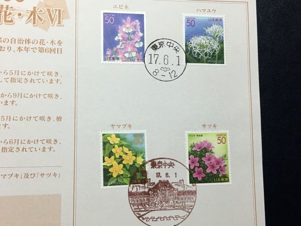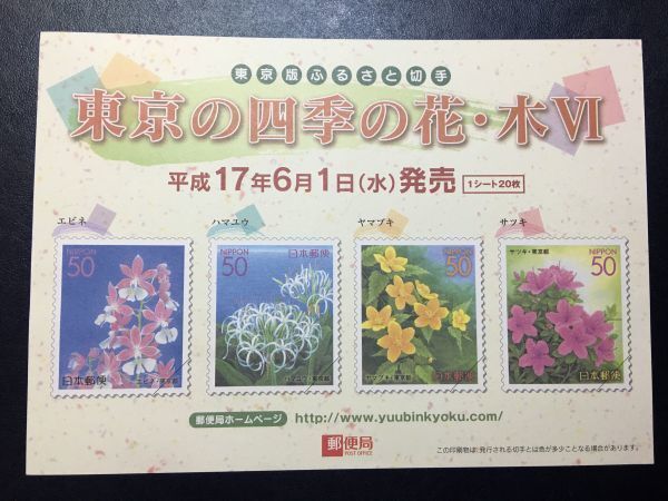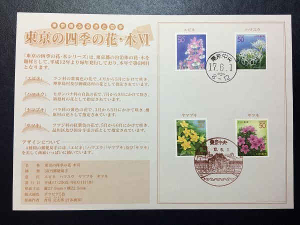 772 2005年 郵便局発行 ふるさと切手解説書 東京版「四季の花木VI」4種貼 東京中央 FDC初日記念カバー使用済消印初日印記念印特印ハト印