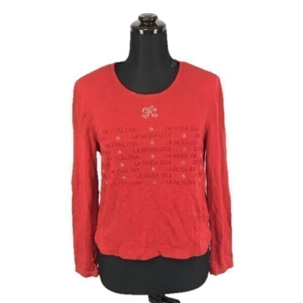 日本製★GK伊太利屋★ラインストーン/プルオーバー/長袖ニットシャツ【9/レディースM/赤】GK ITALIYA/イタリヤ◆senBF327