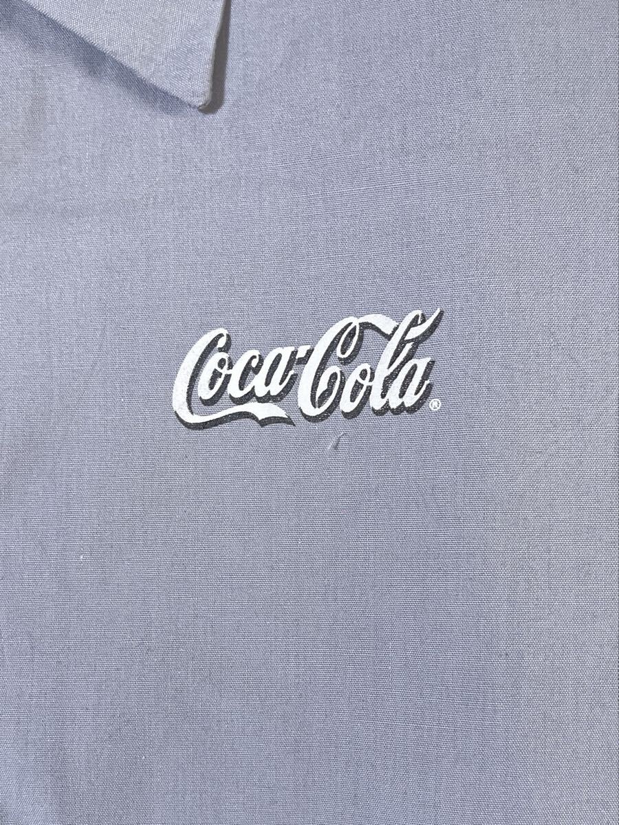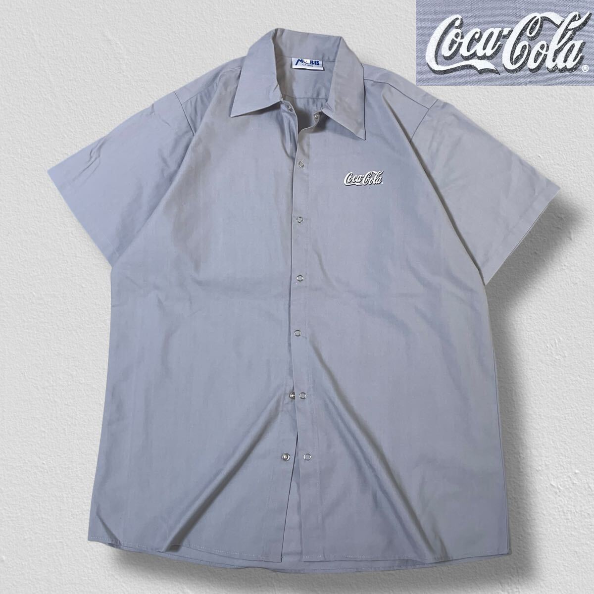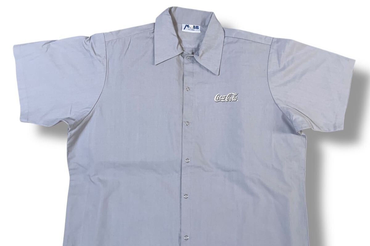 MOBB 半袖ワークシャツ ロゴマーク Coca-Cola アイスブルーグレー L ●洗濯プレス済●ネコポス可● シャツ コカコーラ 古着/489