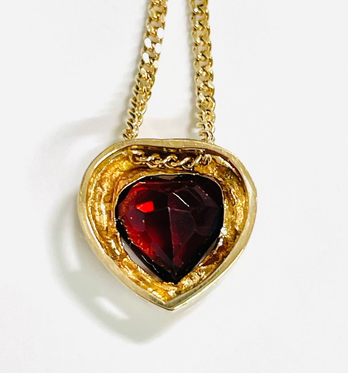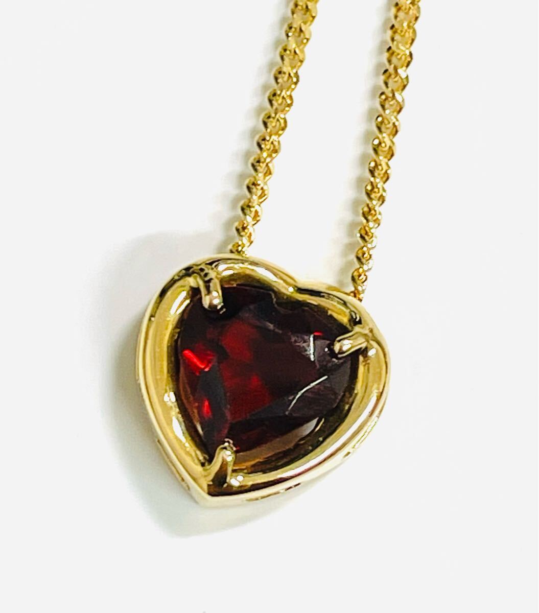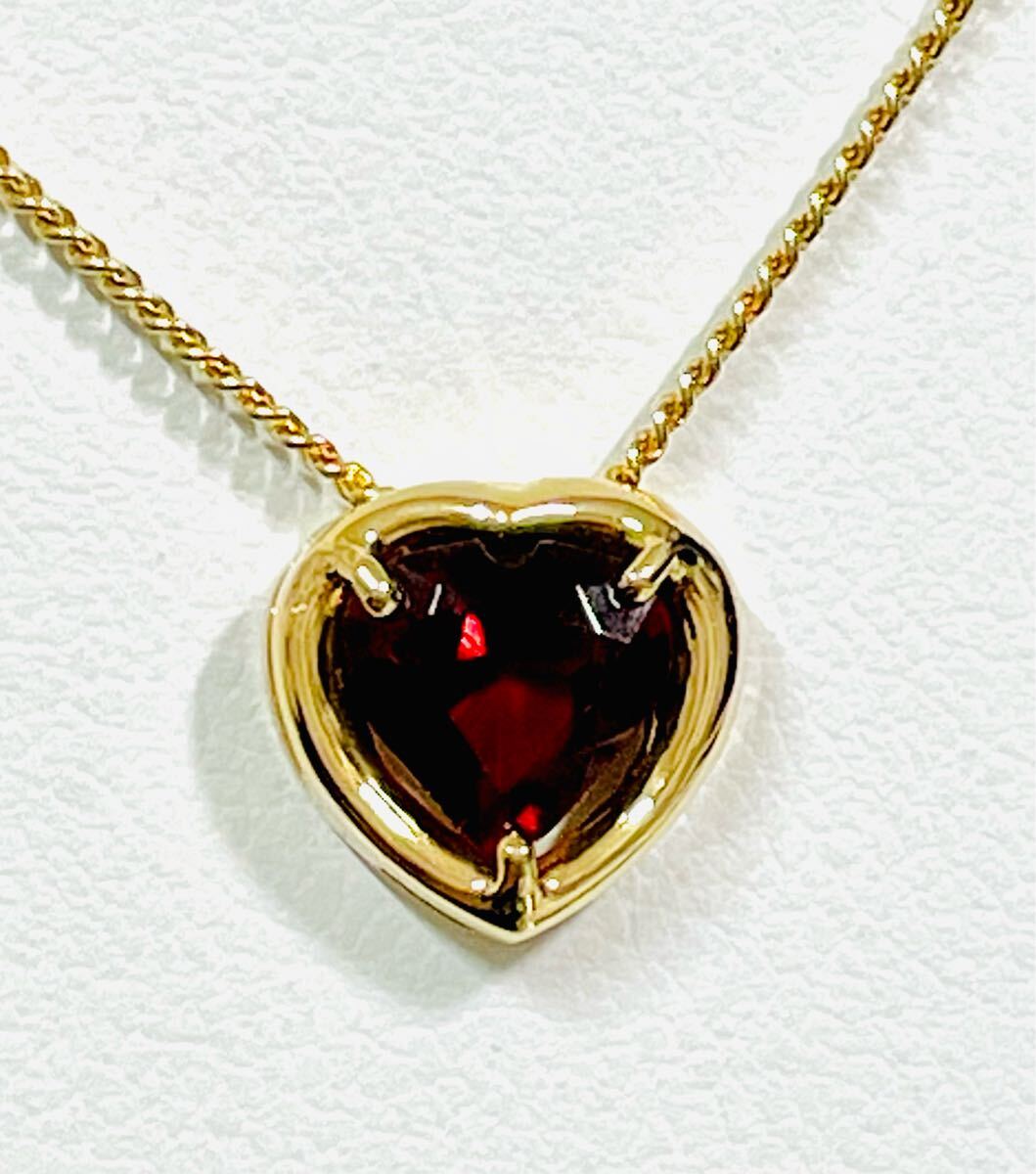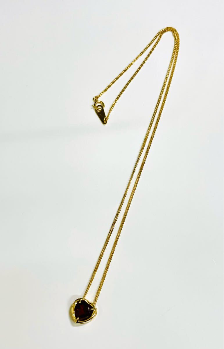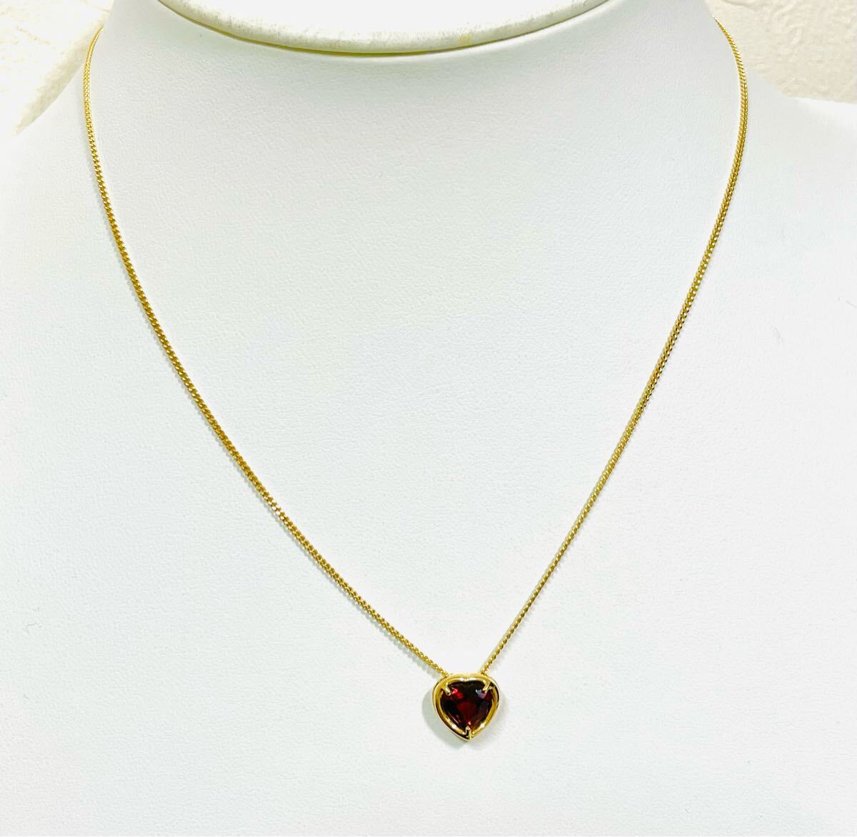 こちらは、K18喜平柄チェーンにK18台にハート型ガーネット1石付きネックレスです。