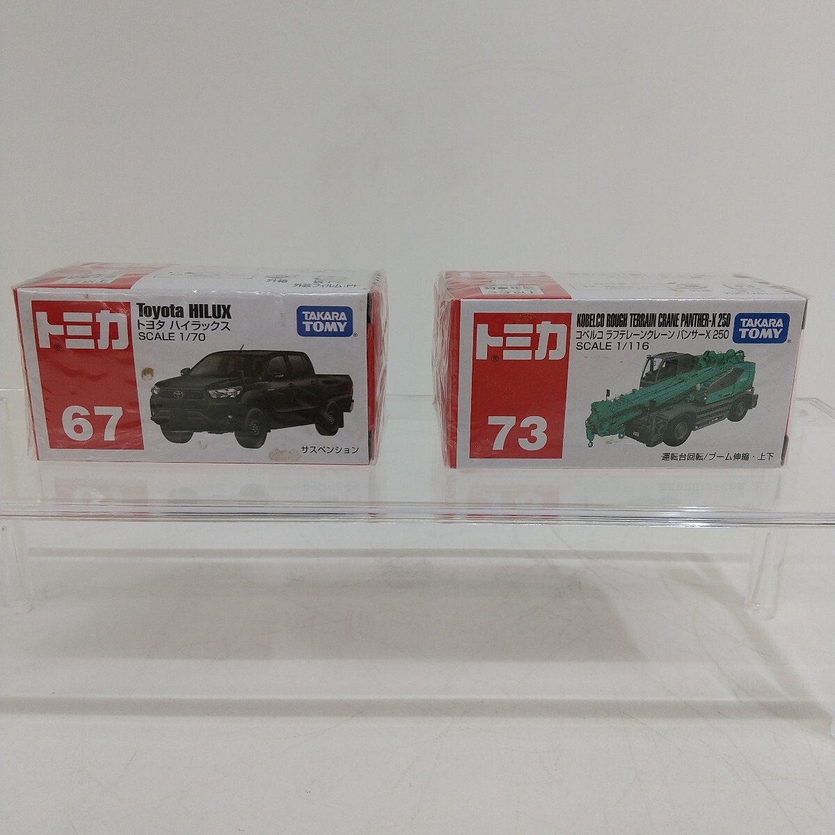 【商品名】 トミカ 2台 73 コベルコ ラフテレーンクレーン 67 トヨタ ハイラックス 【メーカー】 タカラトミー 【状態】 中古品です。 細かい傷や汚れがあります。 中古品にご理解ある方にご検討お願いいたします。 ****************************************************** 管理番号 415 |