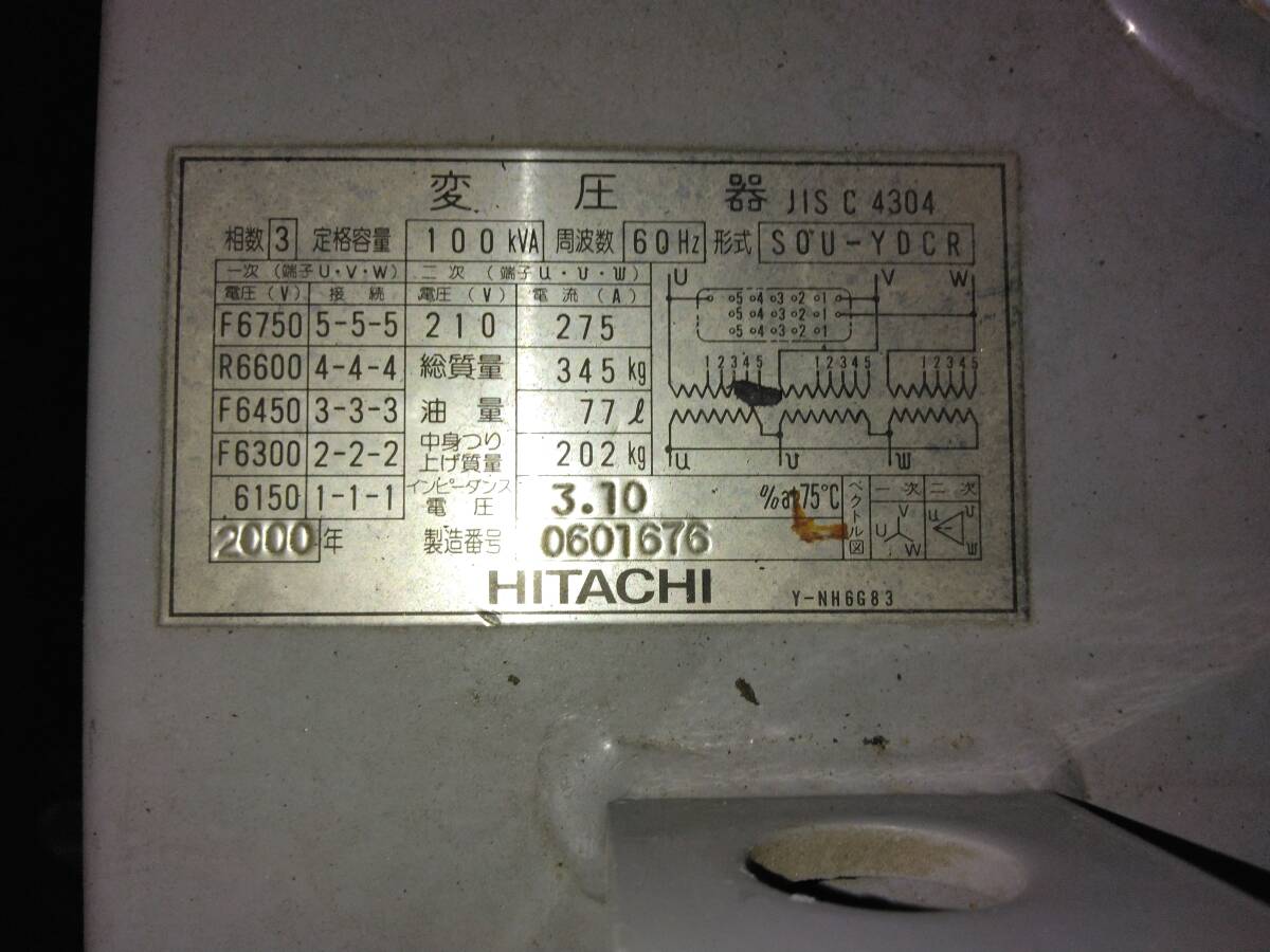 L947 岐阜県大垣市まで直接引き取り限定 ジャンク HITACHI SOU-YDCR 低損失形変圧器 油入変圧器 日立 トランス 2000年製 7/31