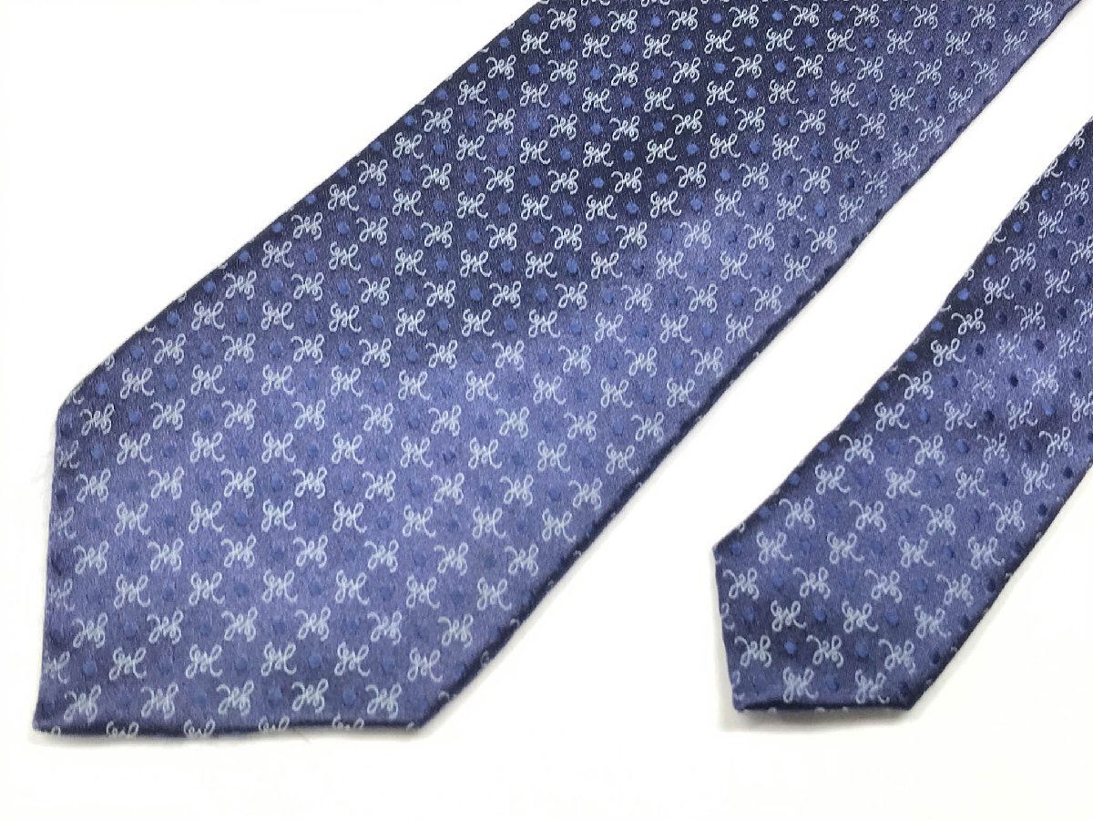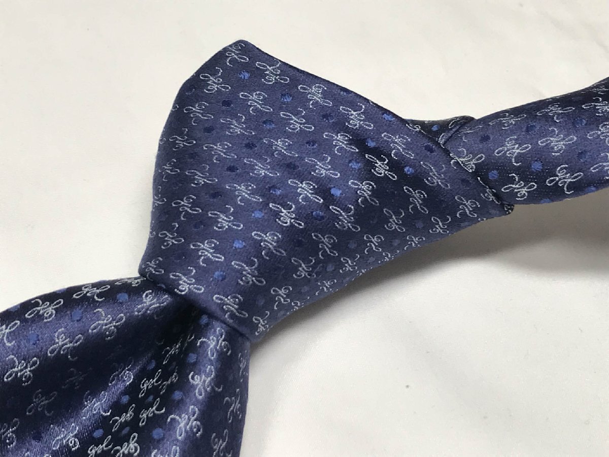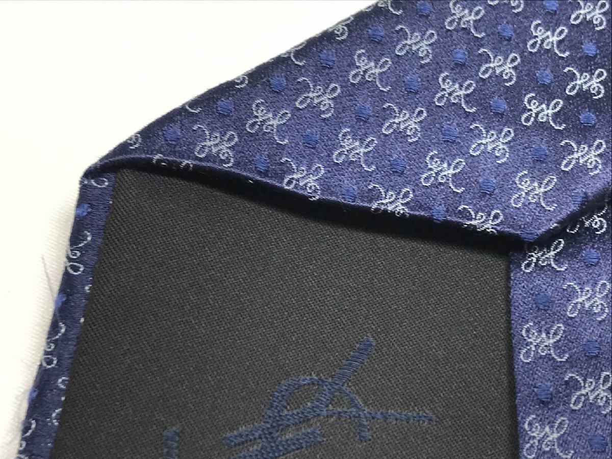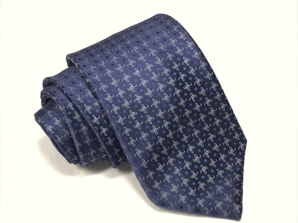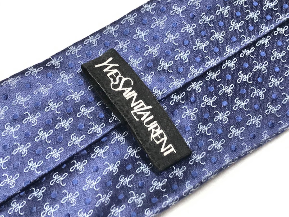 美品 【イブサンローラン Yves Saint Laurent】 刺繍柄 シルクネクタイ (メンズ) ネイビー系 フランス製 ◇3MM8393◇