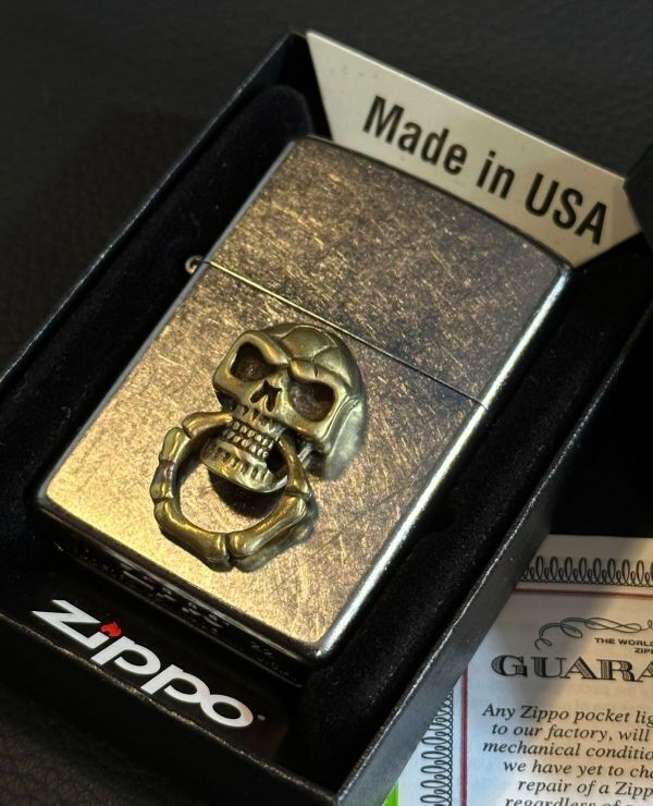 ★USA直輸入 ZIPPO スカル 骸骨 髑髏 ドクロ ジッポー メタル 貼り ライター 喫煙具