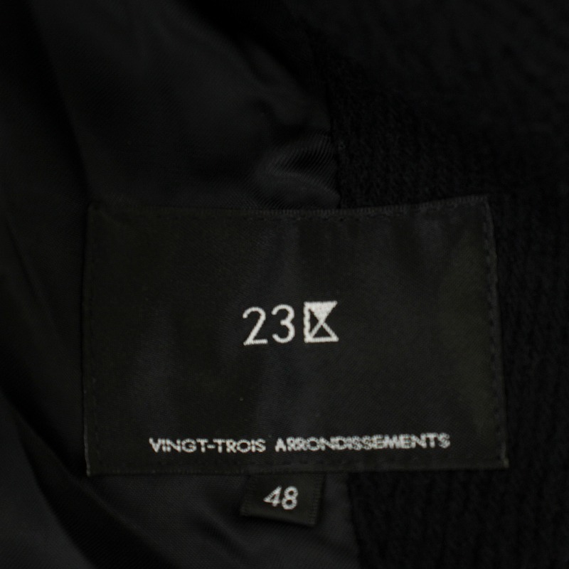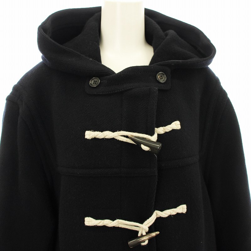 23区 オンワード樫山 22AW ヘリンボーン ダッフルコート SCWWNW0510 フード ロングコート 48 黒 ブラック