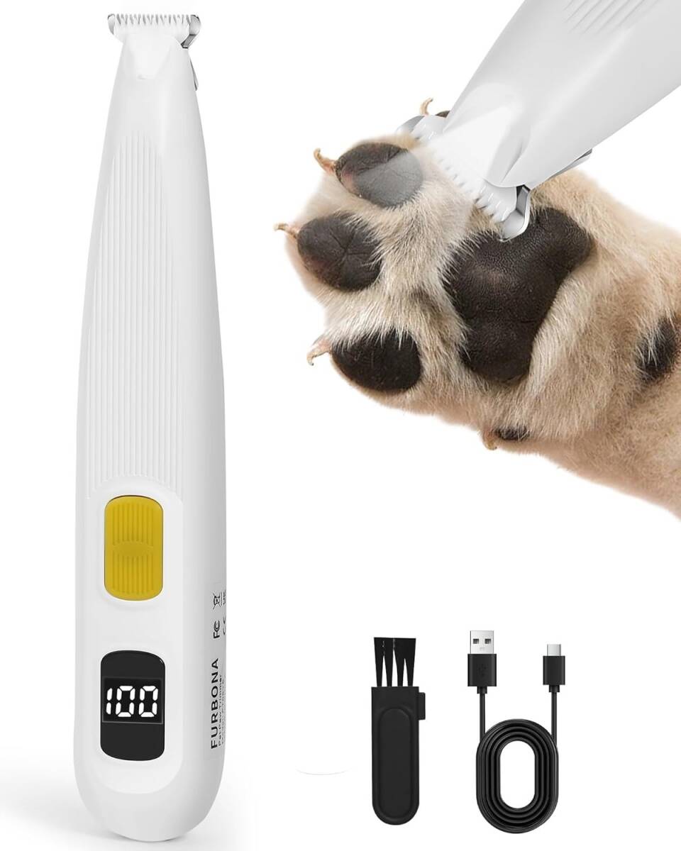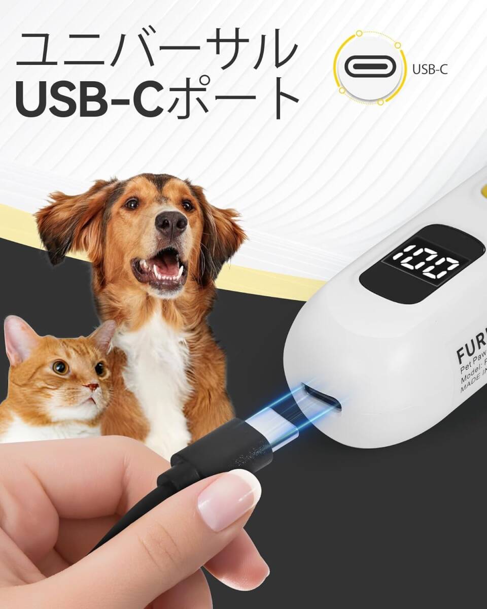 FURBONA アップグレード版 犬猫用足裏トリマー LEDライト付 低騒音 USB-C充電 コードレス 2段階速度 小型軽量